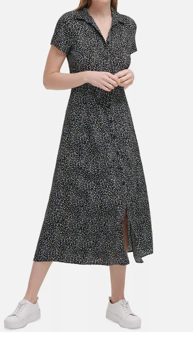 Calvin Klein Jeans Printed Shirtdress Women Womens Clothing - Dresses. Sprinkled with mini printed motifs, this crepe shirtdress offers a fresh spin on a classic style from Calvin Klein Jeans. Button-front closure Imported point collar Unlined Waistline seam Size & Fit Approx. 47 long from center back neck to hem Approx. model height is 510Materials & Care Machine washable Viscose Viscose Button-front closure Imported; Point collar Unlined; Waistline seam Machine washableDue to variances in monitor color, and lighting, the color of some items may differ slightly from the photographs