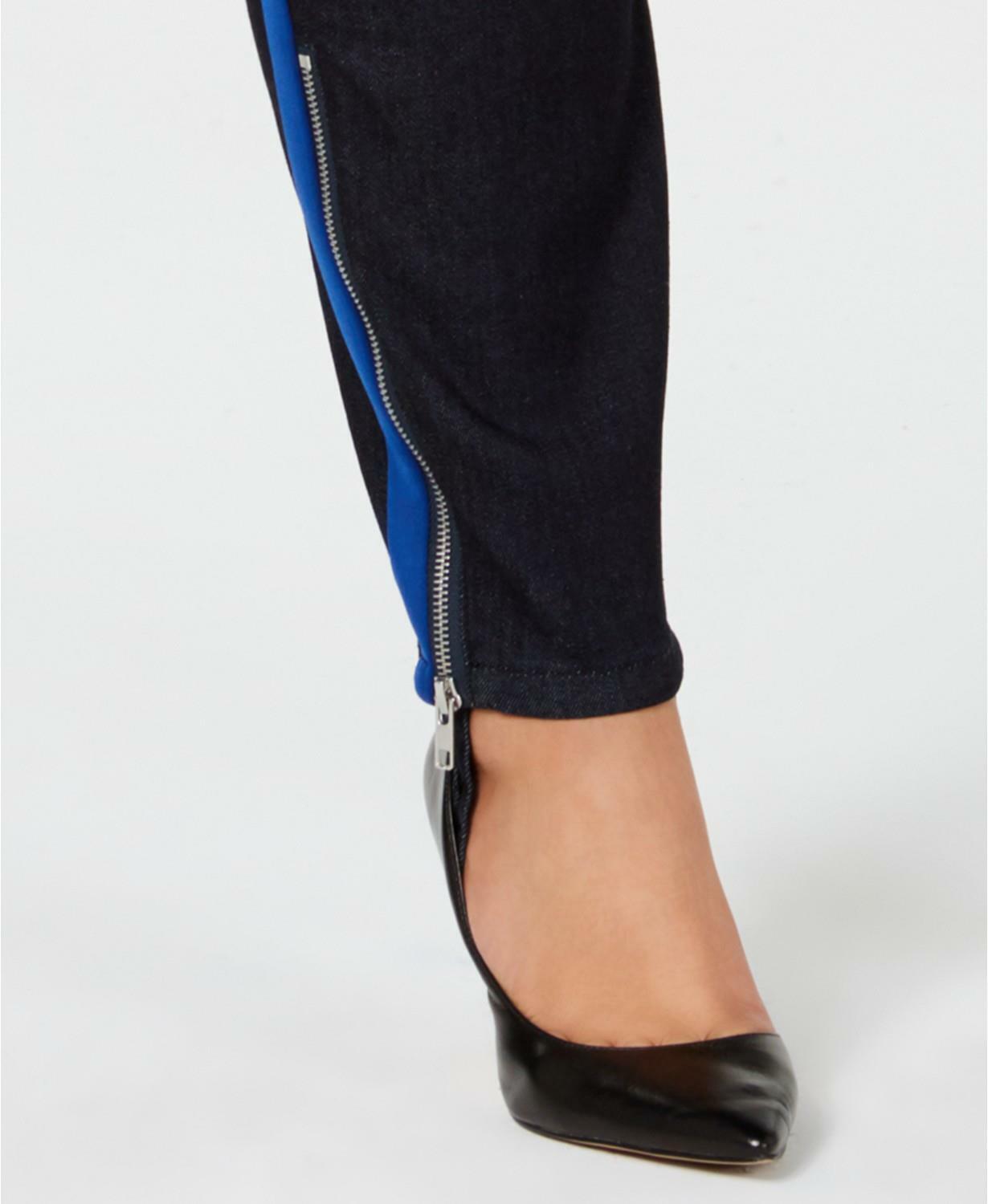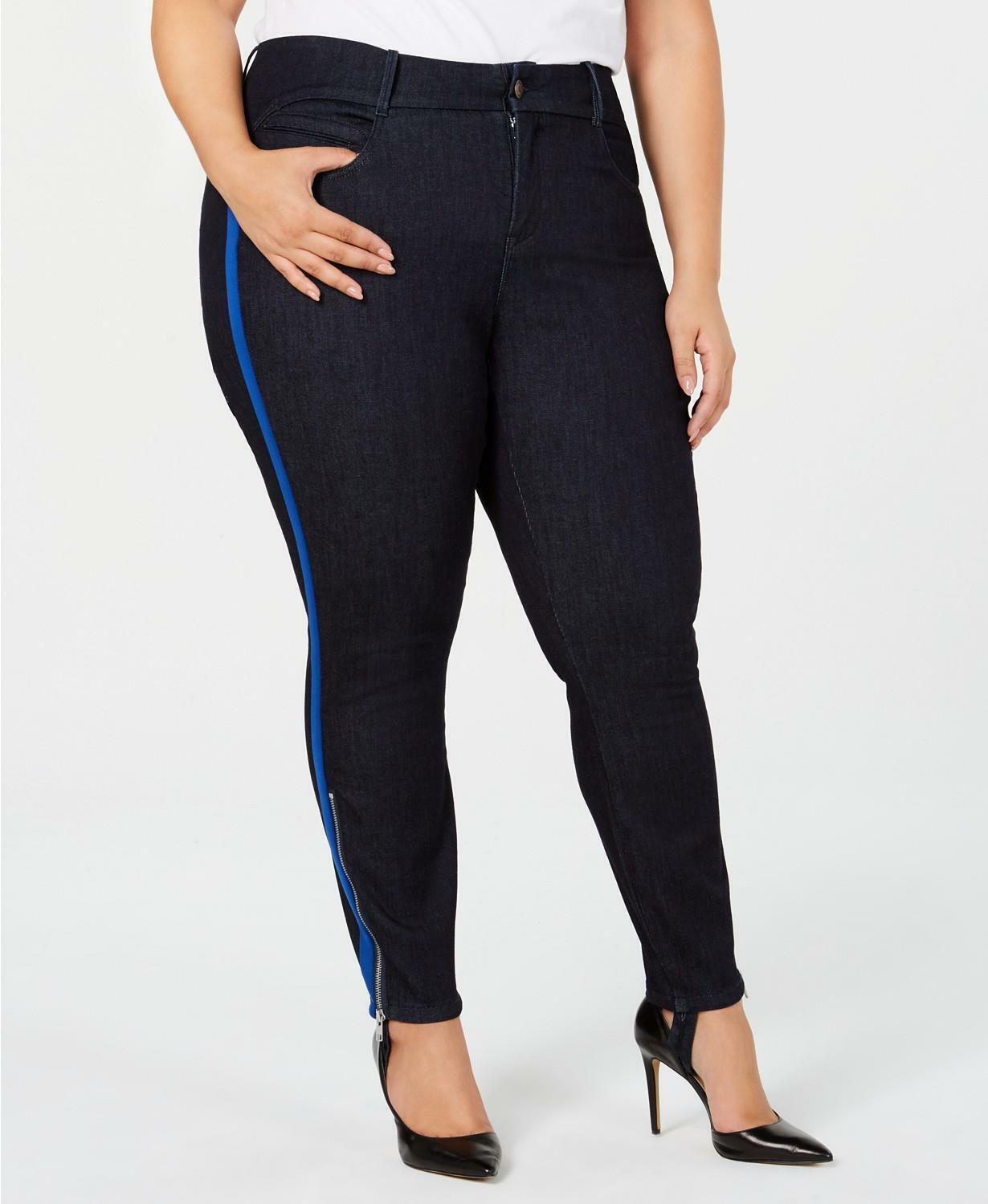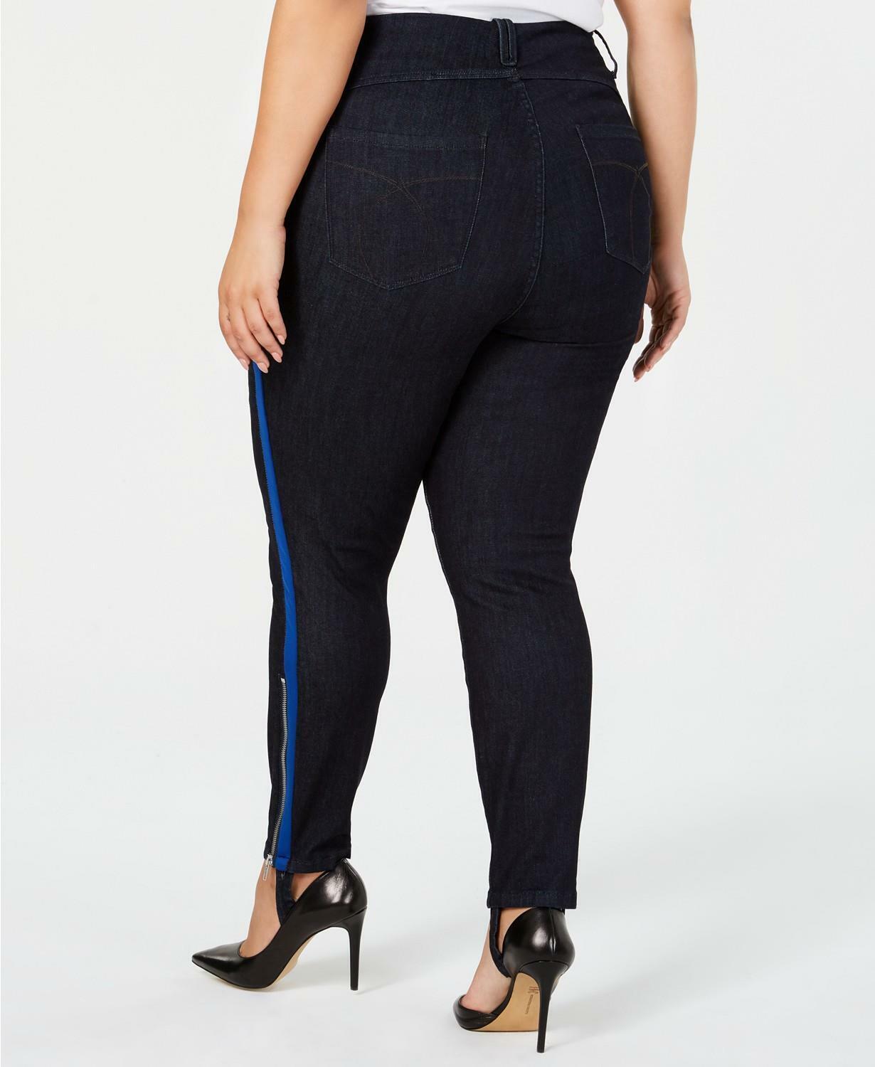 Plus Size Womens Ysj Zip Ankle Stirrup Skinny Jeans, - Blue High rise Zipper and button closure; belt loops Tech-Fit tummy control and corset shaping tightens the waist and complements the hips; sleek stretch denim; removable stirrups; zip ankles Varsity Detail featured on The It List Cotton/polyester/spandex Machine washable