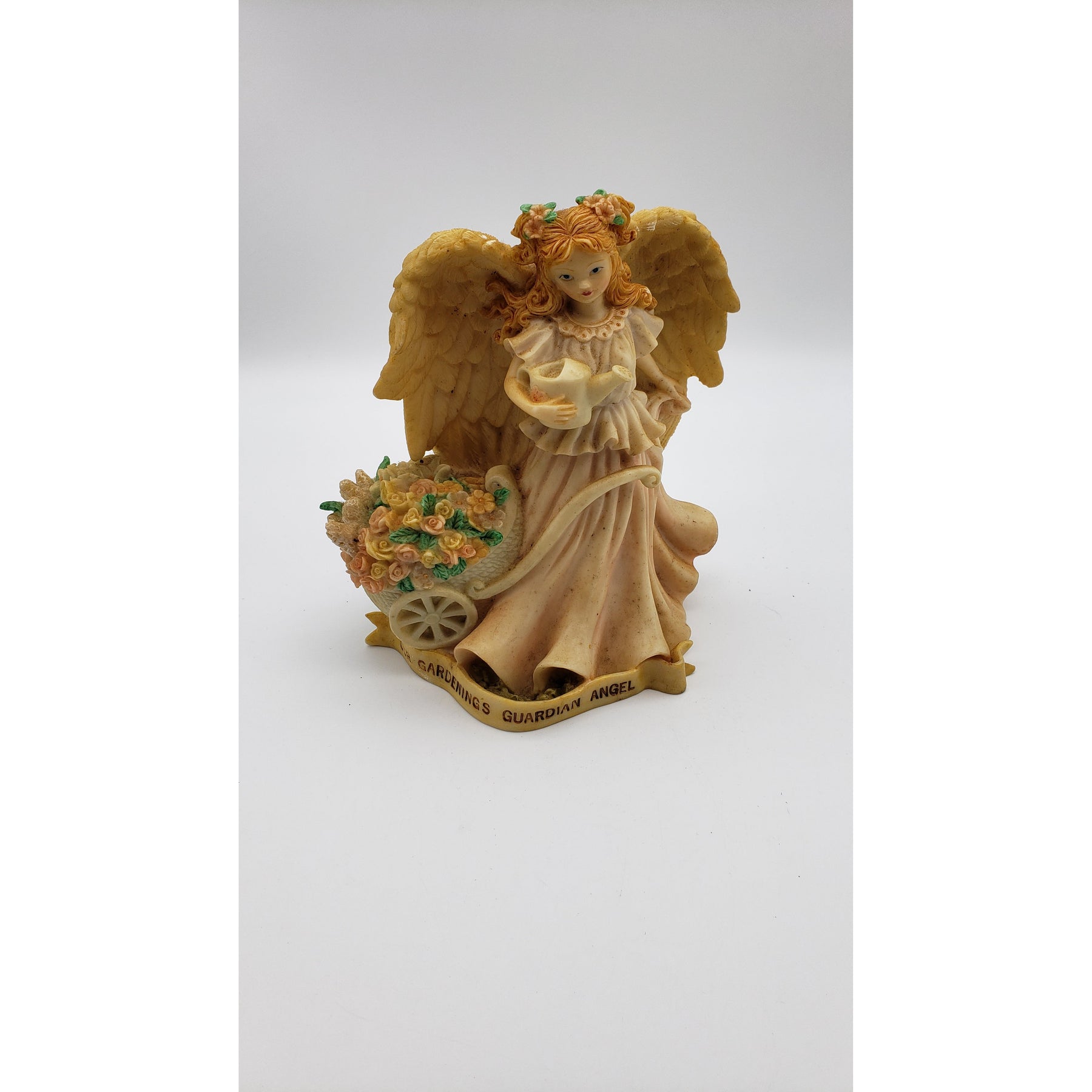A pre-owned item in like new condition. This item shows little to no signs of use, and has been inspected for faults, flaws, basic functionality, and other unsightly blemishes. Figure measures 7in high. Pedestal inscription reads, OUR GARDENINGS GUARDIAN ANGEL.