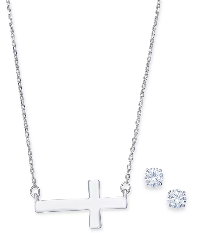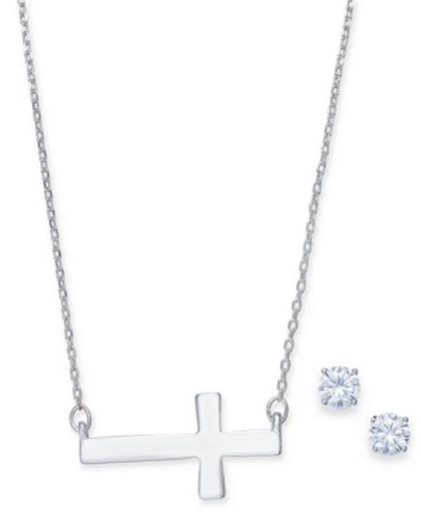Alfani Cross Collar Necklace & Crystal Stud Earrings Set, , Jewelry & Watches, Fashion Jewelry - Fashion Jewelry, . Alfani brings faith to fashion with this beautiful cross collar necklace and stud earrings set. Set in silver-tone mixed metal; glass Approx. length: 19; approx. stud diameter: 1/2 Item comes packaged in a gift box Photo may have been enlarged and/or enhanced.Due to variances in monitor color, and lighting, the color of some items may differ slightly from the photographs