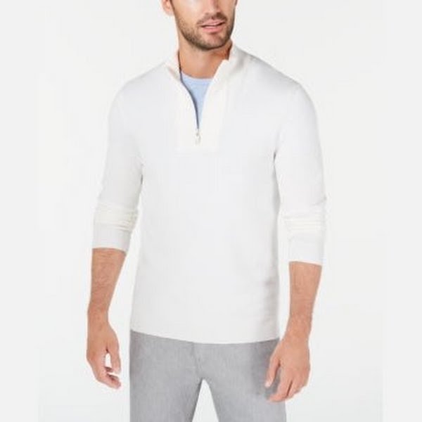 The perfect solution for in-between weather, this quarter-zip Alfani sweater is in soft, breathable cotton for your total comfort.