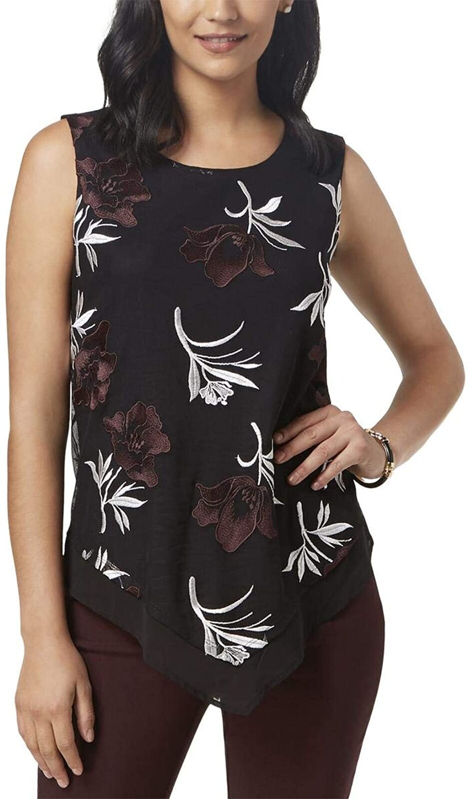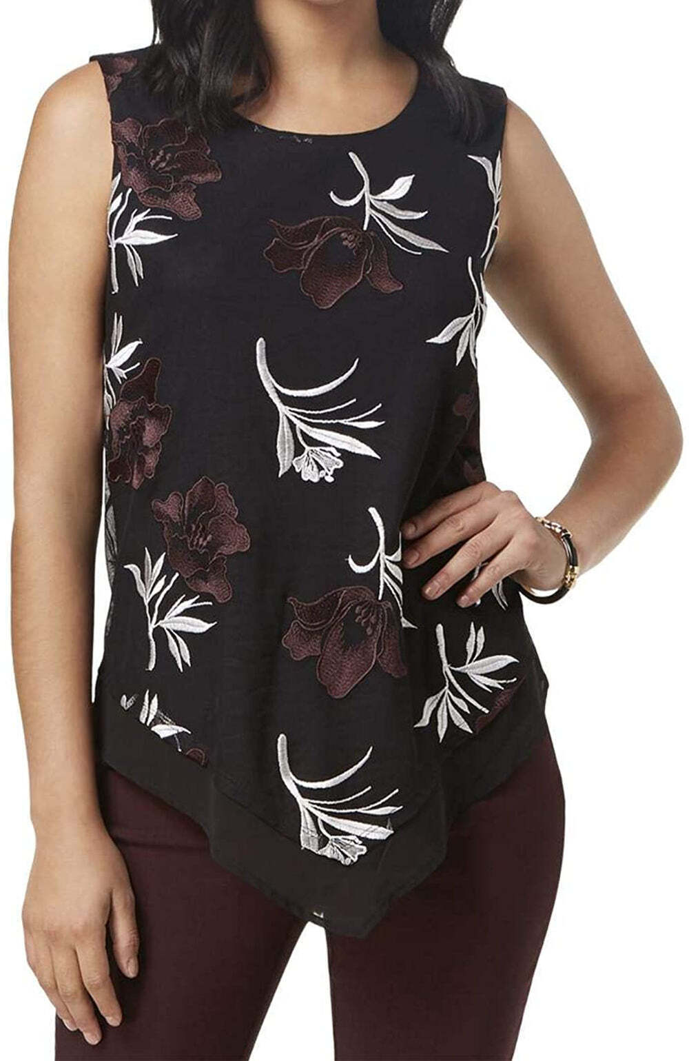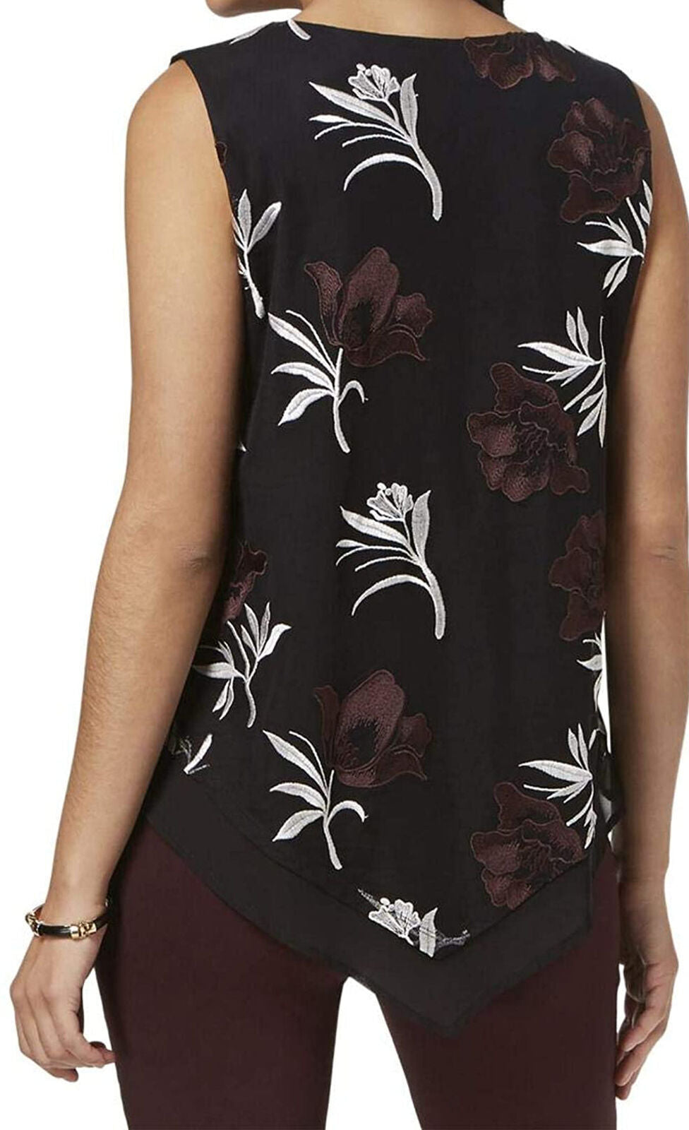 Alfani gives you an effortless essential thats perfect for pairing with this sleeveless top, featuring a polished print and a chiffon V-hem. Approx. model height is 510 and she is wearing a size small Hits at hip S/Blackcoop neckline Layered chiffon V-hem Nylon; hem: polyester Machine washable Imported