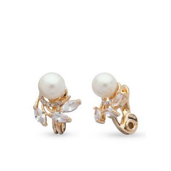 Artfully arranged cubic zirconia accent these imitation pearl clip-on earrings by Anne Klein, set in either silver-tone or rose gold-tone mixed metal. Approximate diameter: 1/2. The unique E-Z Comfort clip is easy on the ear and comfortable to wear; clip earrings stay in place and hug the ear without pinching Photo may have been enlarged and/or enhanced.