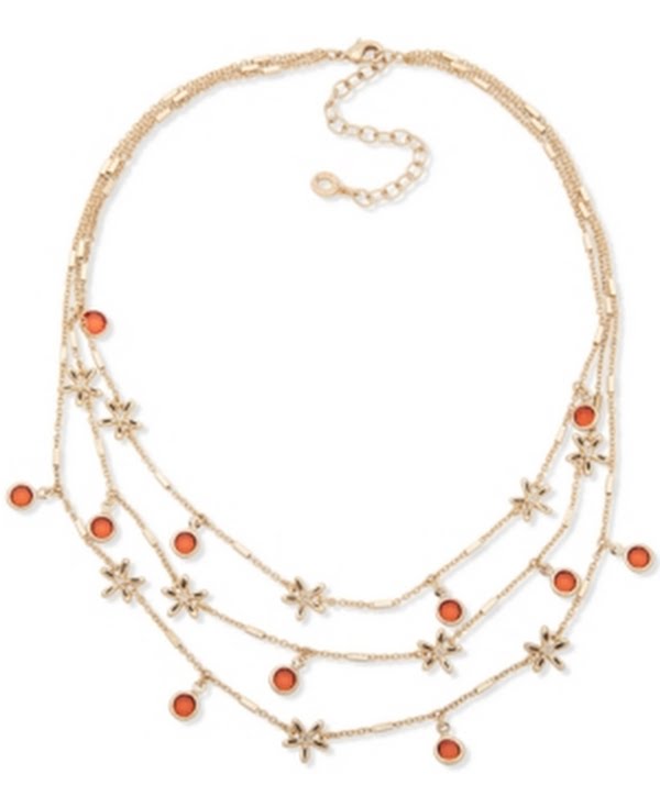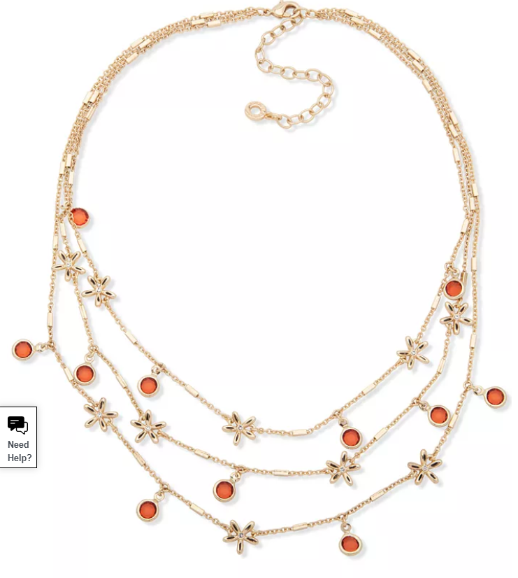 Anne Klein Gold-Tone Pave Flower & Stone Charm Layered Necklace, 16 + 3 extender Jewelry & Watches Fashion Jewelry - Necklaces. Colorful stones dangle between pavé-marked flowers on this layered Anne Klein necklace. Set in silver-tone mixed metal; glass; plastic Shortest chain length: 16 + 3 extender; longest chain length: 19; approx. frontal drop: 3 Lobster clasp closure Photo may have been enlarged and/or enhanced.