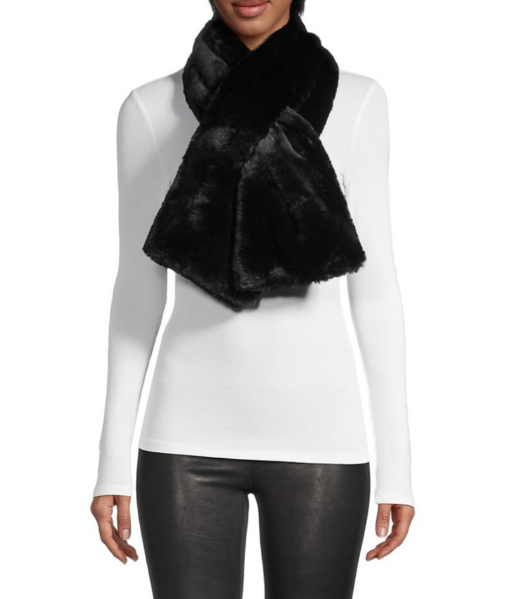 Item Notes: Ultra soft faux fur creates this pull through scarf. Polyester Fur type: Dyed faux fur Fur origin: China Dry clean Imported SIZE 20W x 122L Box H42 (OS/Black-1) Box H42 (OS/Black-2) Box H42...