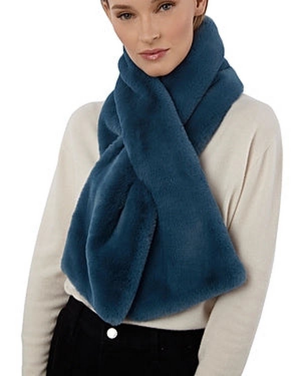 Ultra soft faux fur creates this pull through scarf. Polyester Fur type: Dyed faux fur Fur origin: China Dry clean Imported SIZE 20W x 122L
