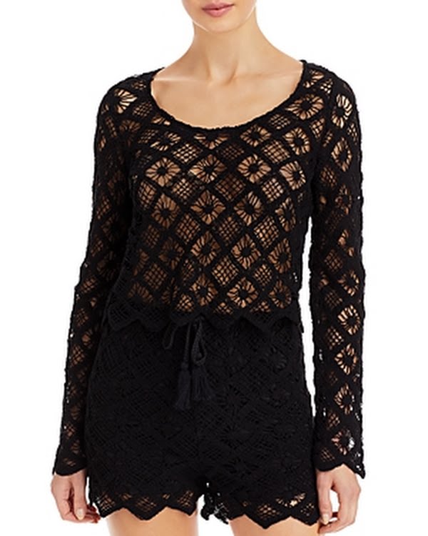 Fits true to size, order your normal size Designed for a slim fit Model measurements: 510 height, 33.5 bust, 23.5 waist, 34.5 hips, wearing a size small PRODUCT DETAILS ABOUT THE BRAND You won’t find AQUA’s of-the-moment details and fun, feminine designs anywhere else. Exclusive to Bloomingdale’s, the trend-right collections have your entire closet covered, from formal dresses to off-duty athleisure and activewear to sumptuous cashmere in every color under the sun—with statement-making accessories to complete every look. Limited-edition collaborations with your favorite labels and influencers drop seasonally, while new AQUA Pet and mommy-and-me collections let you twin with your little ones (human or otherwise!) in style. FEATURES Round neck Long sleeves Pullover style Allover crochet detail This item is part of our 100% Bloomingdales collection, featuring exclusive pieces you wont find anywhere else. Imported MATERIAL & CARE 100% cotton Hand wash