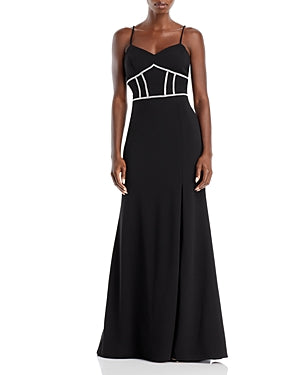 Fits true to size, order your normal size Figure-hugging fit at bust and waist; relaxed fit at hips Mid-stretch fabric Designed for a floor-length look Approx. 61 from high point shoulder to hem, based on a size small Model measurements: 59 height, 32 bust, 23 waist, 35 hips, wearing a size small PRODUCT DETAILS V-neck Spaghetti shoulder straps Sparkle embellished seams at front bodice and back waist Back zip closure Lined This item is part of our 100% Bloomingdales collection, featuring exclusive pieces you wont find anywhere else. Please note that this dress will be delivered with a black b-tag attached, with instructions for removal included. If the b-tag is removed, the dress cannot be returned. Made in USA of Imported Materials MATERIAL & CARE 94% polyester/6% spandex Dry clean; remove trim before cleaning