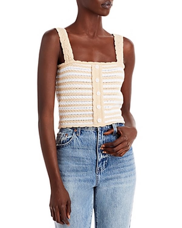 You won’t find AQUA’s of-the-moment details and fun, feminine designs anywhere else. Exclusive to Bloomingdale’s, the trend-right collections have your entire closet covered, from formal dresses to off-duty athleisure and activewear to sumptuous cashmere in every color under the sun—with statement-making accessories to complete every look. Limited-edition collaborations with your favorite labels and influencers drop seasonally, while new AQUA Pet and mommy-and-me collections let you twin with your little ones (human or otherwise!) in style. FEATURES Double square neck Sleeveless, wide shoulder straps Front button placket Cropped Scalloped trims This item is part of our 100% Bloomingdales collection, featuring exclusive pieces you wont find anywhere else. Imported MATERIAL & CARE 100% cotton Hand wash