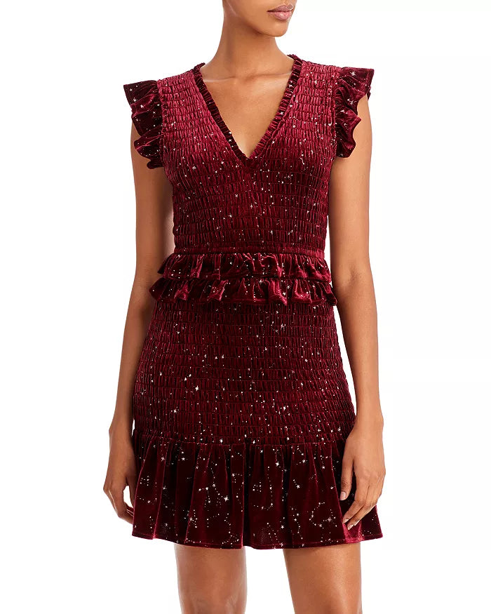 E & FIT Fits true to size, order your normal size High-stretch fabric Designed for a mini length Approx. 32 from back of neck to hem, based on a size small Model measurements: 510 height, 33.5 bust, 23.5 waist, 34.5 hips, wearing a size small PRODUCT DETAILS V-neck Pullover style Short flutter sleeves Smocked bodice A-line mini skirt This item is part of our 100% Bloomingdales collection, featuring exclusive pieces you wont find anywhere else. Imported