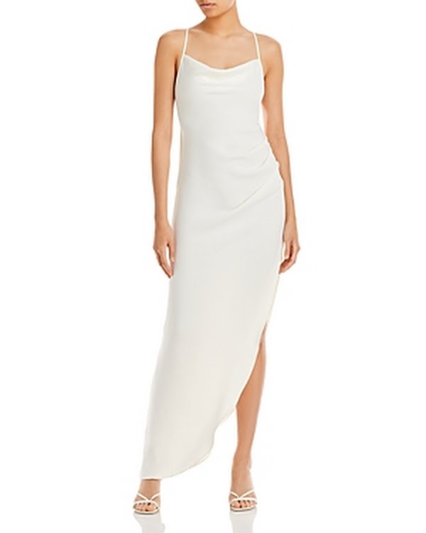 You won’t find AQUA’s of-the-moment details and fun, feminine designs anywhere else. Exclusive to Bloomingdale’s, the trend-right collections have your entire closet covered, from formal dresses to off-duty athleisure and activewear to sumptuous cashmere in every color under the sun—with statement-making accessories to complete every look. Limited-edition collaborations with your favorite labels and influencers drop seasonally, while new AQUA Pet and mommy-and-me collections let you twin with your little ones (human or otherwise!) in style. FEATURES Cowl neck, cowl-draped back Self-tie halter straps at mid-back Spaghetti straps Sheath silhouette Asymmetrical hem, slit at side This item is part of our 100% Bloomingdales collection, featuring exclusive pieces you wont find anywhere else. Imported MATERIAL & CARE 100% polyester Machine wash