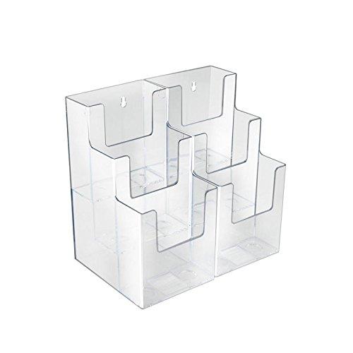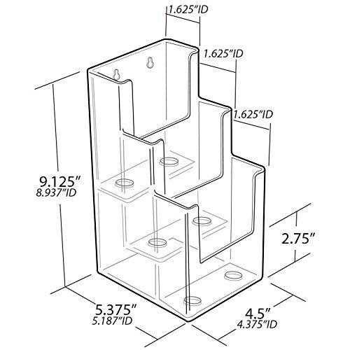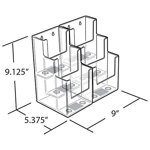 Multiples of: 2 Material: Acrylic, Color: Clear Number of Tiers: 3, Number of Pockets: 6 Measurements: 9W x 5.375D x 9.125H Brochure Size: Tri-fold