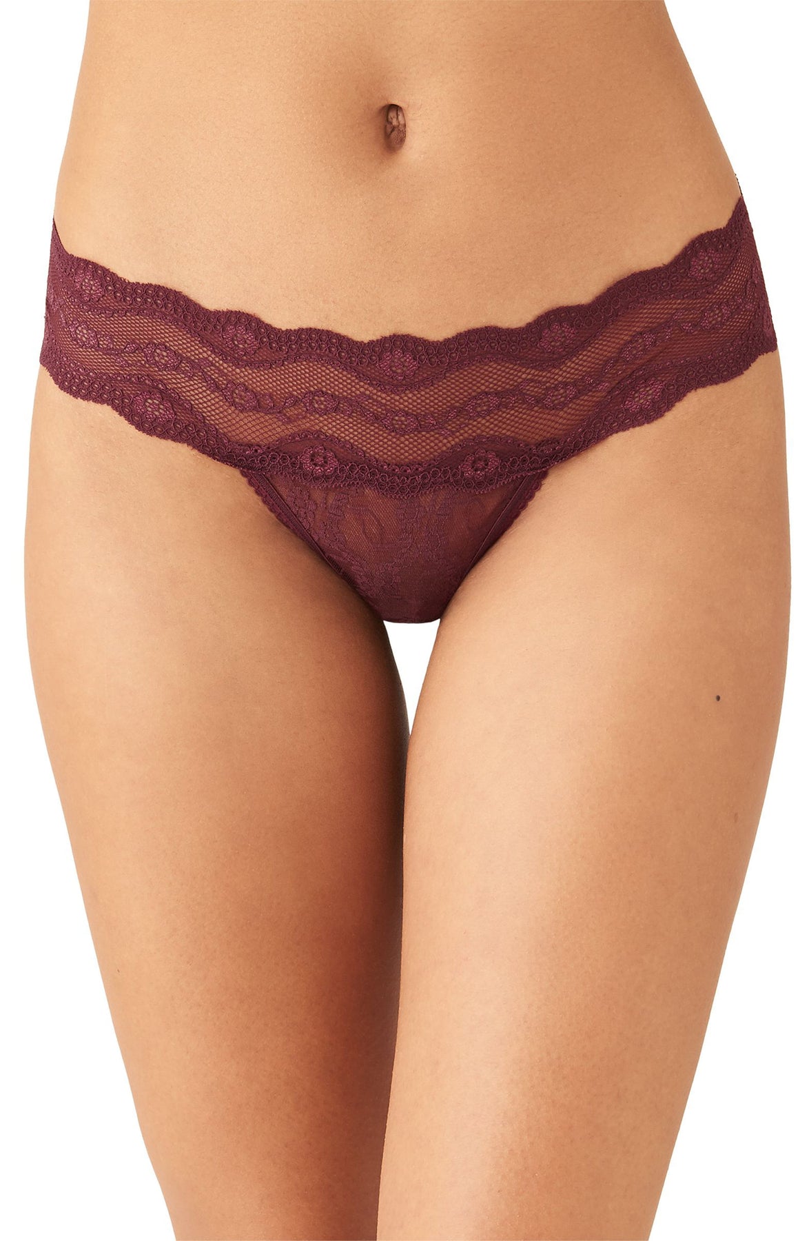 B. temptd by Wacoal is a free-spirited collection of flirty lingerie with Wacoals signature fit. Express yourself in fantastic bras and panties. Can you be tempted?, Style Number: 970182 Sexy, ultra-low rise lace thong with 3 wide waistband, Lace edge lays flat creating no VPL, Semi-sheer stretch lace with cotton panel Average Figure ,Allover 100% Lace, Lace, Nylon, Spandex, Stretch Lace, Not Maternity, Thong, Thongs, Panty.