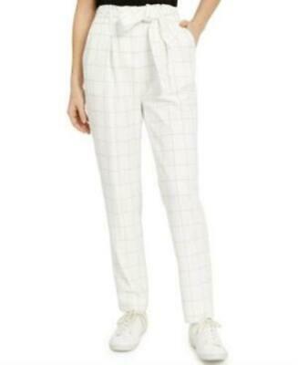 Bar Iii Belted Windowpane Slim Straight-Leg Pants, Women Womens Clothing - Pants .