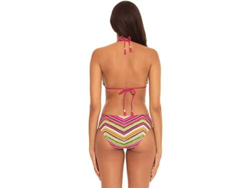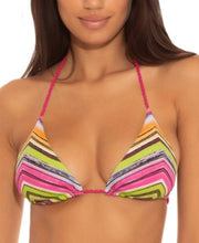 Take the plunge in this triangle bikini top from Becca, a cute reversible pick designed with ties at the back. Non-removable cups Adjustable rope ties at back; adjustable straps V-neck; reversible from ribbed print to solid Lined Ribbed shell, lining: polyester (88% recycled)/spandex; solid: nylon/spandex Hand wash Imported