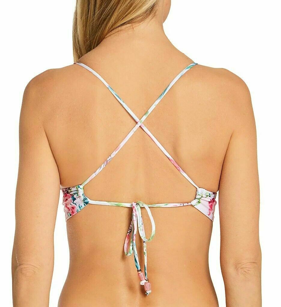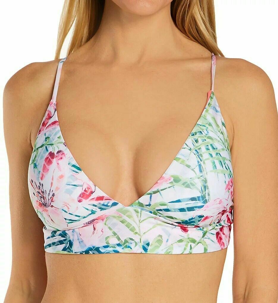 Becca Lush Lagoon Skyler Halter Swim Top (843107). Youll enjoy the warm days of summer in this floral print swim top. Made of polyester/spandex. Lined, wireless cup shapes and gives an uplifted, rounded look. Cup has pockets for removable padding. Show off your cleavage in this v-neckline! Covered elastic runs underneath cups and outlines neckline for support. Self-lined microfiber underband for a comfortable, secure fit. Top of sides has covered elastic for extra support. Restricted stretch, encased elastic straps cross at center back and adjust fit through side casings. Straps have decorative beads at ends and tie at back. Attributes: MPN: 843107 Size: M Color: multi Material: 83% polyester
