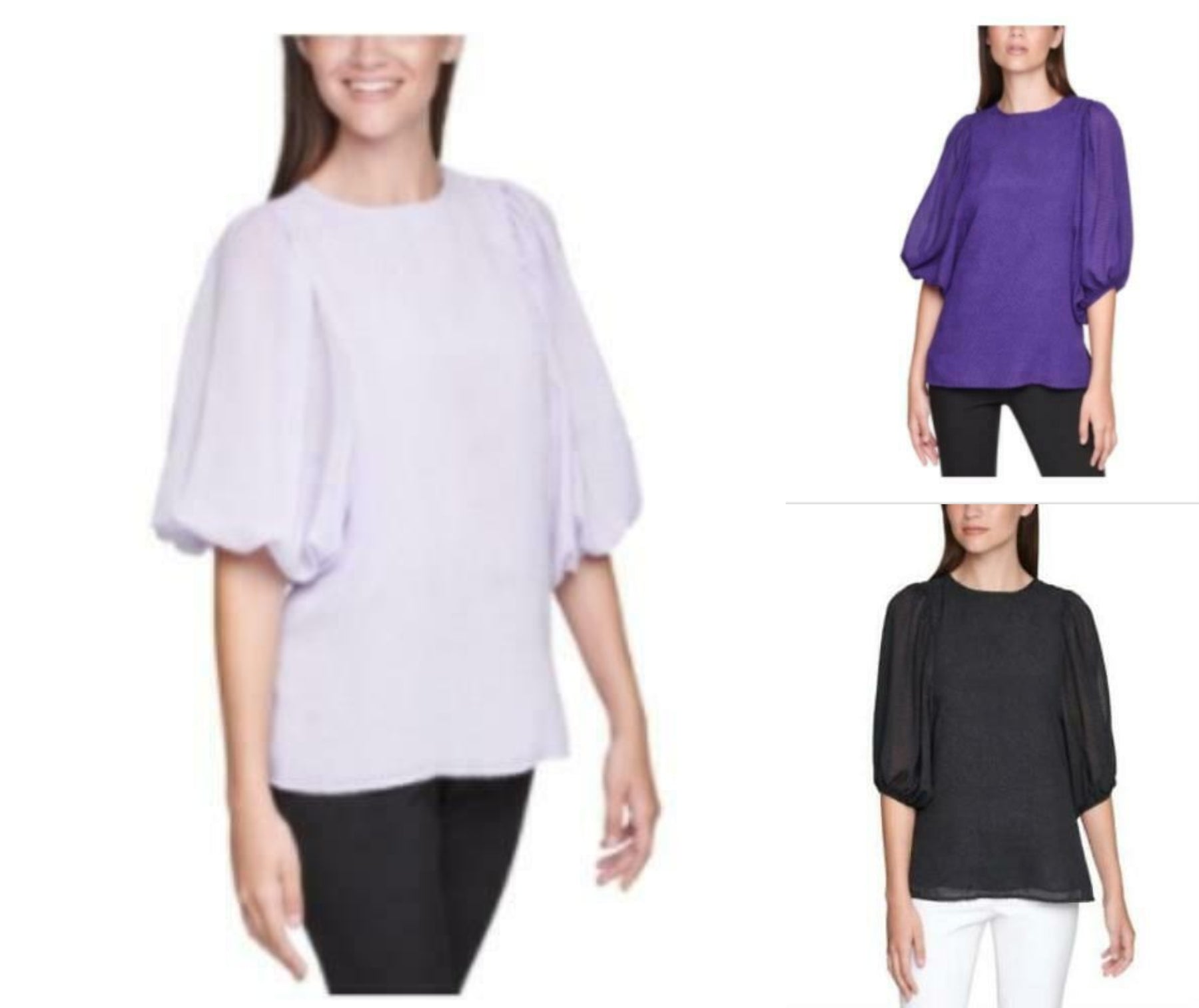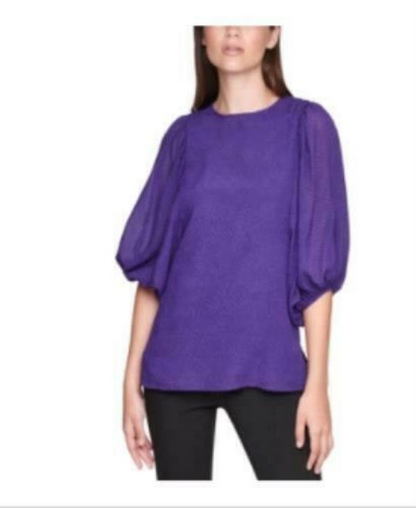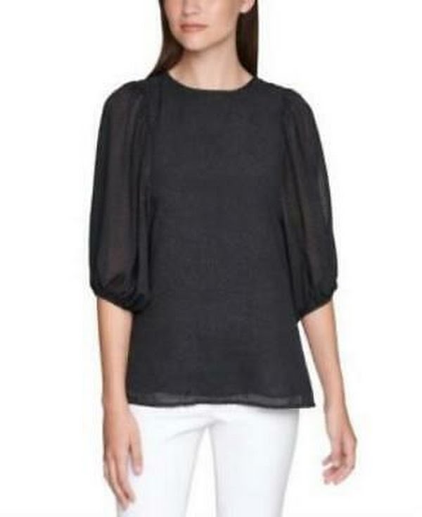 Calvin Klein Balloon-Sleeve Top Women Womens Clothing - Tops.