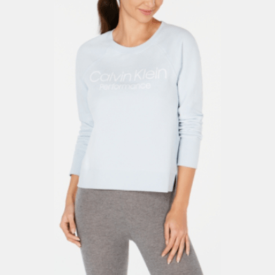 Item Notes: Work out in style in this sweatshirt from Calvin Klein Performance, an active essential with signature detailing for casual flair. Hits at hip INSPIRED FOR: Athleisure Crew neck; long raglan sleeves; logo at front; ribbed trim Cotton/polyester Machine washable
