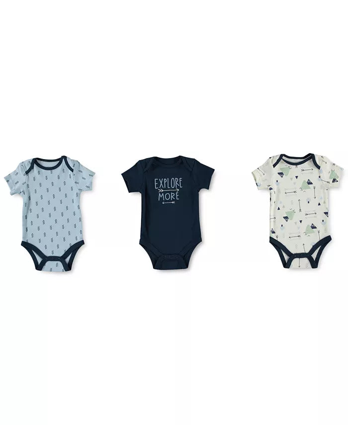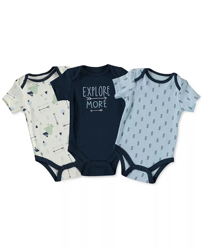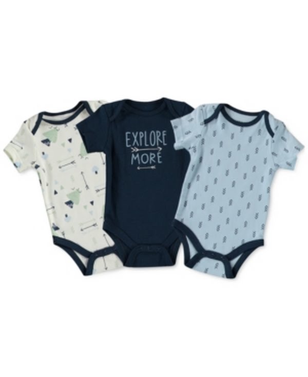 Styled in soft cotton, this three-pack of printed bodysuits from Cutie Pie Baby makes sure that hes always ready and looking cute. Includes 3 bodysuits Assorted colors and prints Crewneck Snaps at bottom 100% cotton Machine washable Imported