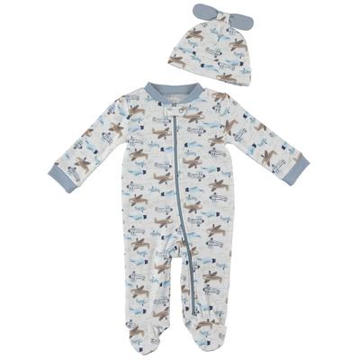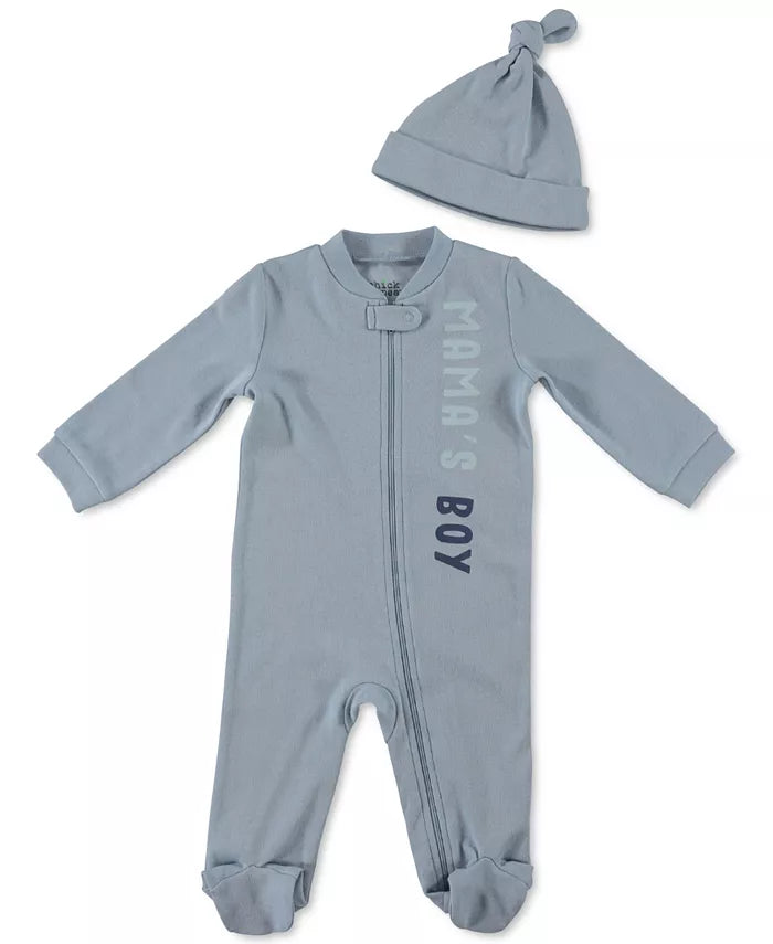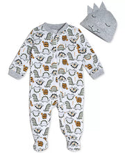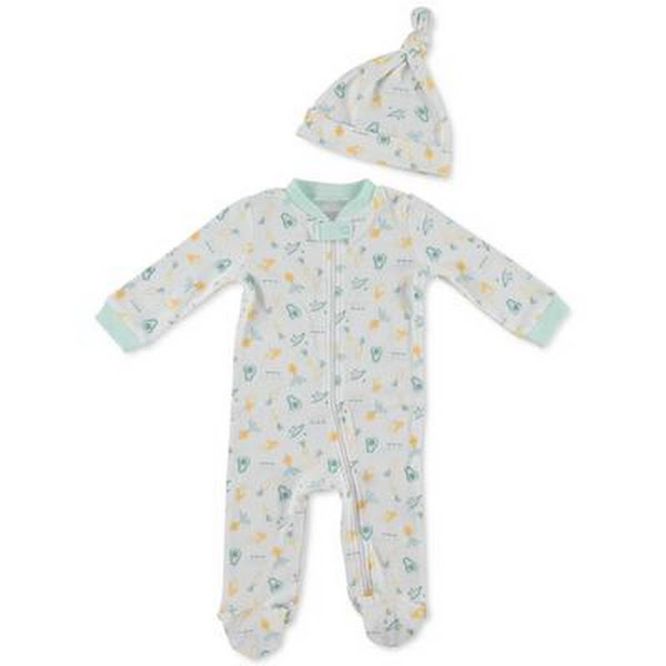 So sweet and snuggly, this soft printed cotton coverall from Cutie Pie Baby comes with a matching hat for an adorable head-to-toe look. Crewneck Asymmetrical zipper at front Allover print Footed Includes matching hat 100% cotton Machine washable Imported