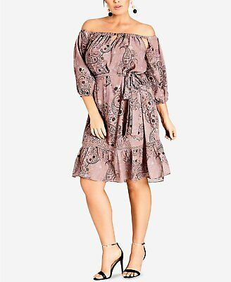 Designed with a romantic off-the-shoulder neckline, this printed plus size dress from City Chic features keyholes at the neckline and a crochet inset at the hem. Knee length: approx. 35-1/2 long Off-the-shoulder neckline; pullover styling Cutouts at neckline; self-tie at waist; crochet inset at hem 3/4-sleeves Please note that this item has International Sizing. Please see US Sizing Conversions noted here that will appear on the merchandise tag when received: 14W= XS, 16W = S, 18W = M, 20W= L, 22W, = XL, 24W = XXL. ABOUT THE BRAND: City Chic is a premium Australian fashion brand dedicated to leading a world of curves through bold, sexy, glam & chic fashion. Cut for an hourglass figure to conceal & reveal in all the right places. Polyester; lining: polyester; trim cotton Machine washable Imported