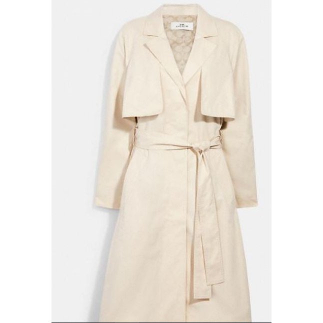 Product Details 55% cotton, 45% polyester Lining: 100% polyester Button closure Slip pockets Self-tie belt Length: 43 1/2 Style No. 1523Due to variances in monitor color, and lighting, the color of some items may differ slightly from the photographs
