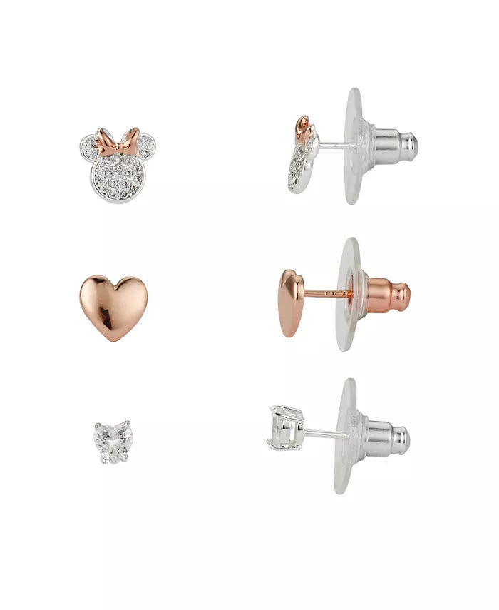 DISNEY Cubic Zirconia Minnie Mouse Earring Flash Plated Set 3 Piece
