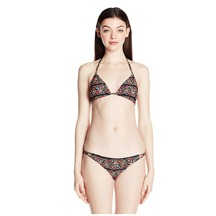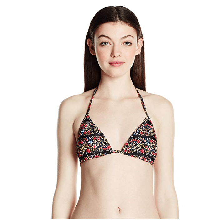 The kali bikini top is a new take on our classic triangle bikini top. This smaller coverage paneled triangle slider top has a soft adjustable neck, back ties for comfort, and removable soft cups. 80% Nylon, 20% Spandex Imported Machine Wash Triangle slider Adjustable ties at back and neck Removable soft cups for added shape