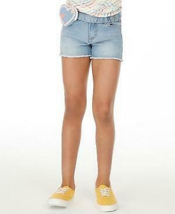 Update her warm-weather look with these frayed-hem denim shorts from Epic Threads, accompanied by a cool heart-shaped wallet belt. Zip fly with button closure; belt loops Hand pocket at sides; pockets at back Frayed hemline Includes coordinating heart wallet Ramie/cotton/polyester/spandex Machine washable Imported