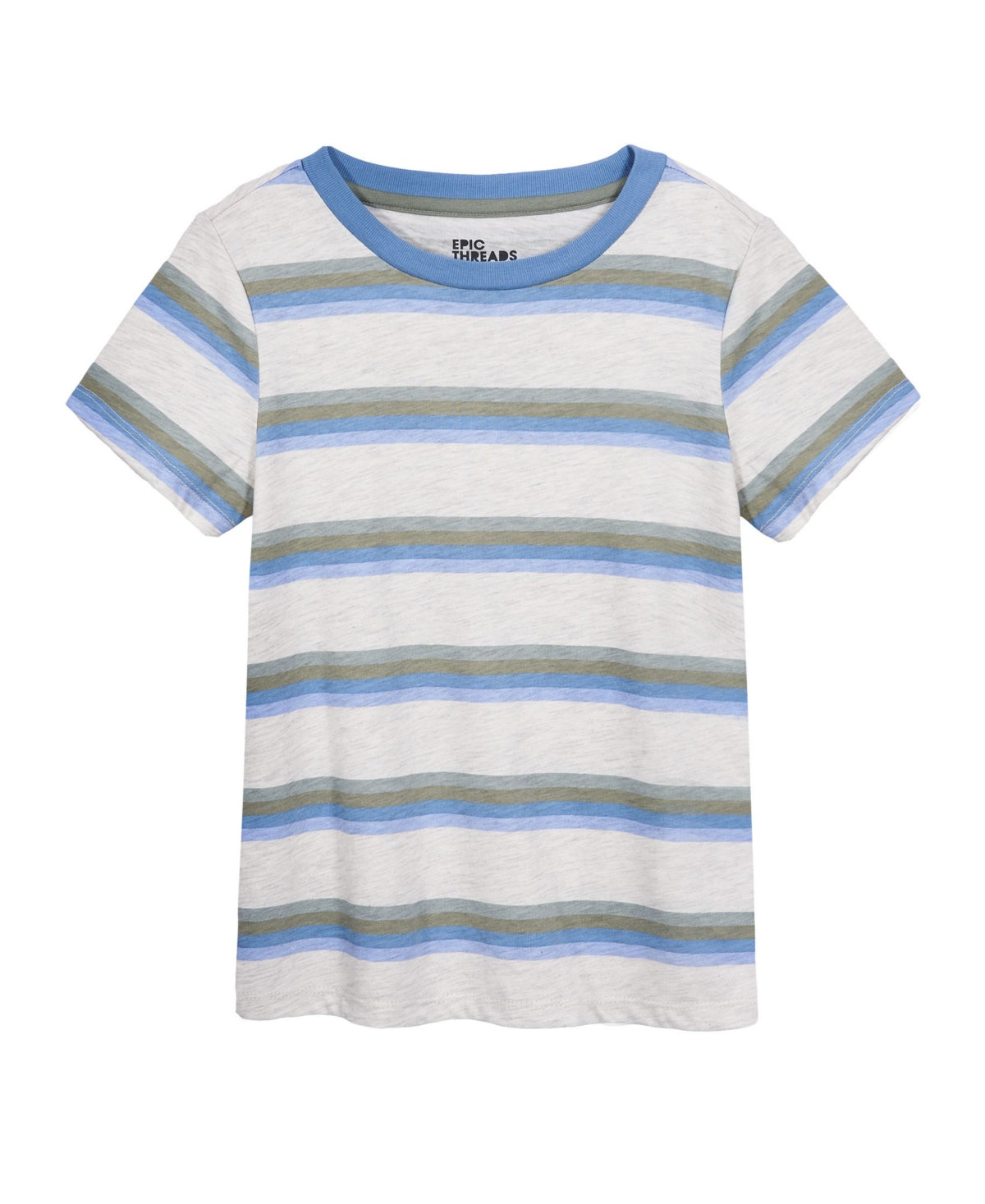 This striped T-shirt from Epic Threads will become a wardrobe staple. Ribbed crew neck Short sleeves All over stripe print Cotton and Polyester Machine Washable Imported