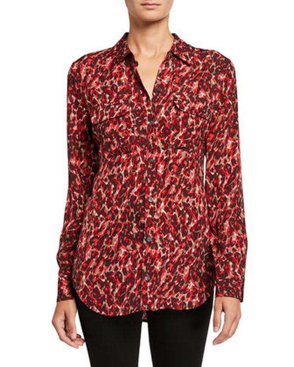 .Manufacturer. Equipment Femme. Retail. $160.00.Style Type. Top. Collection. Equipment Femme. Sleeve Length. Long Sleeves. Closure.. Material. 100% Visose. Fabric Type. Viscose. Specialty. Animal Print.P2474807.The item for sale is pictured above and described on this page. The photo may include additional clothing or props that are for display purpose only and will not be included. Please be sure to read the description carefully.