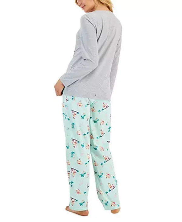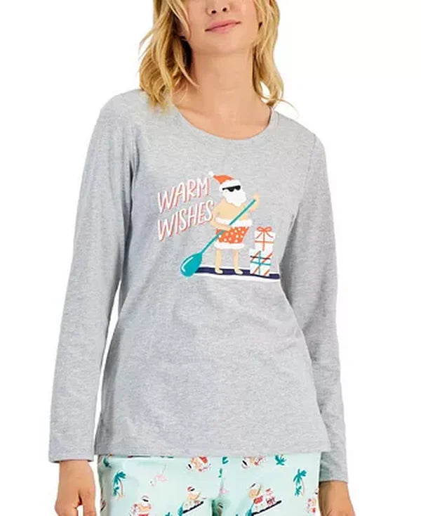 Santa turns surfer dude in this fun set from Family Pajamas, a comfy top with a whimsical graphic and matching printed bottoms. Top: hits at hip, jersey fabric, scoop neckline, pullover styling, long sleeves Pants: hits at ankle: approx. inseam: 30, jersey fabric, elastic waist Search Family Pajamas Tropical Santa to see matching styles for the whole family Top: 100% cotton; cotton/polyester Machine washable Imported