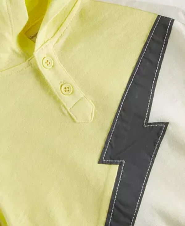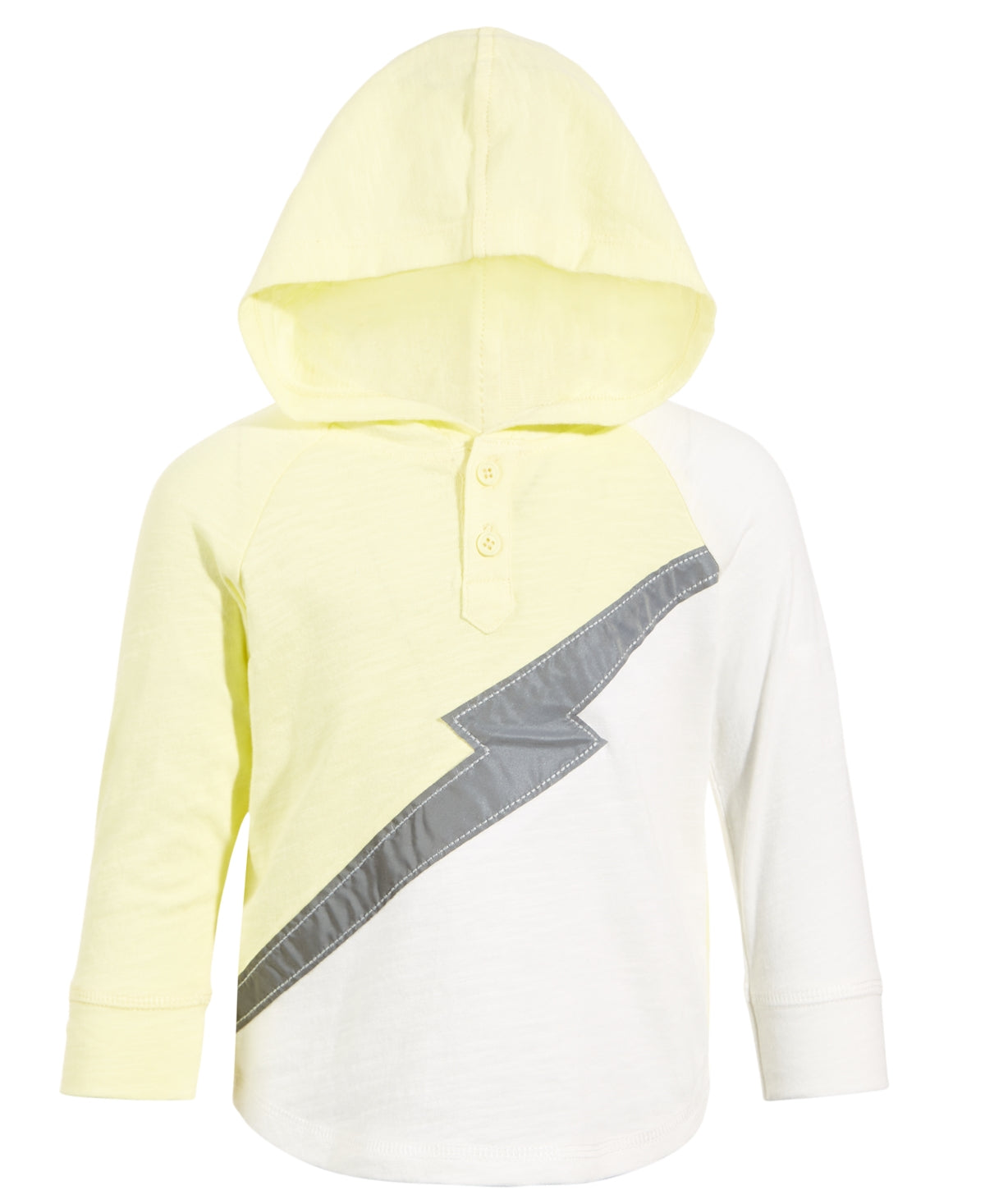 Inject some fresh style into his wardrobe with the lighting bolt applique of this cotton-soft, hooded henley by First Impressions. Long sleeves Pull on, henley button front Functional hood Lighting bolt applique at chest 100% cotton Machine washable Imported