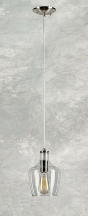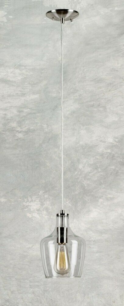 Description: This fixture features a transitional style that will go well with your decor. It has a brushed nickel finish and a lovely clear glass shade. Youll love everything about this light when its on display inside your home. Attributes: Weight: 2.86 lbs