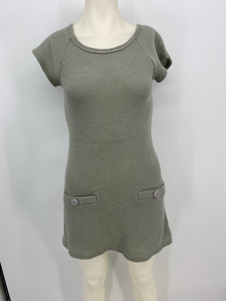 Francescas Collection Grey Knit Retro Sweater Dress Size Small. 60’s vibe Color Black Size Small Medium weave, Short sleeve, scoop neck, 2 front faux pocket details Excellent condition