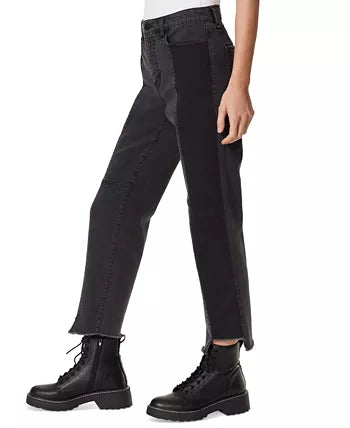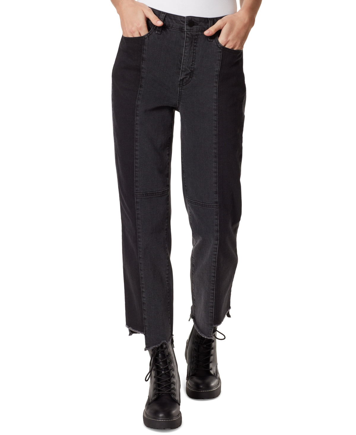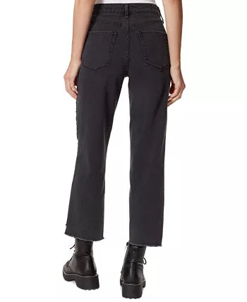 Frayed Denim keeps your denim collection on trend with this classic straight-leg style, complete with frayed hems and a flattering high rise. Approx. model height is 59 and she is wearing a size 27 Approx. inseam: 27 High rise: approx. 10-3/4; leg opening: approx. 15-1/2 Zipper and button closure at front; belt loops Frayed hem Cotton/polyester/viscose/spandex Machine washable Imported