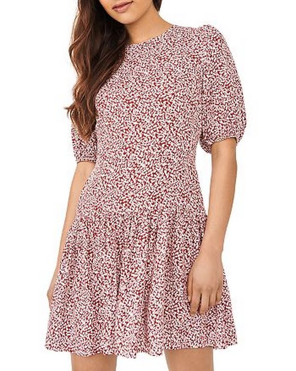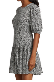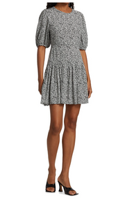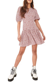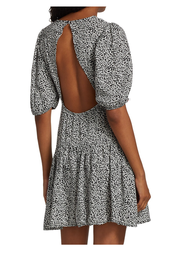 Free People Dancing In The Dark Dress-Women. Fabric: Lightweight, non-stretch soft weave Round neckline Short puff sleeves Flounce hem Button keyhole at back Shell: 100% viscose Unlined Hand wash Imported, Turkey Style #FREEP45553 Dance like nobodys watching in this pretty Free People mini dress, which is accented with a summer-appropriate ditsy print and designed with an open back for an airy feel.
