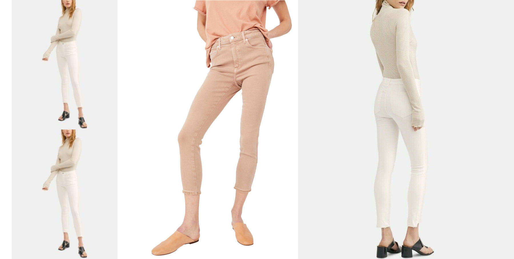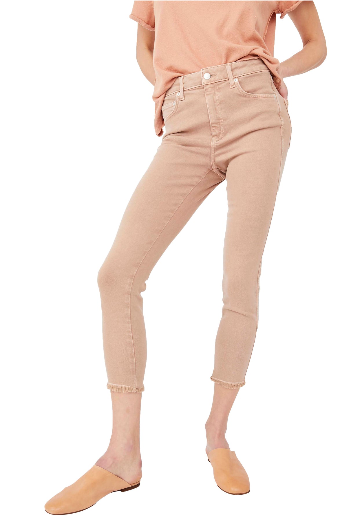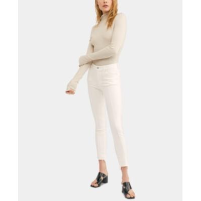 High waist, super skinny silhouette. High-rise jeggings feature a skinny leg and raw-edge hem on a stretch denim fabrication.