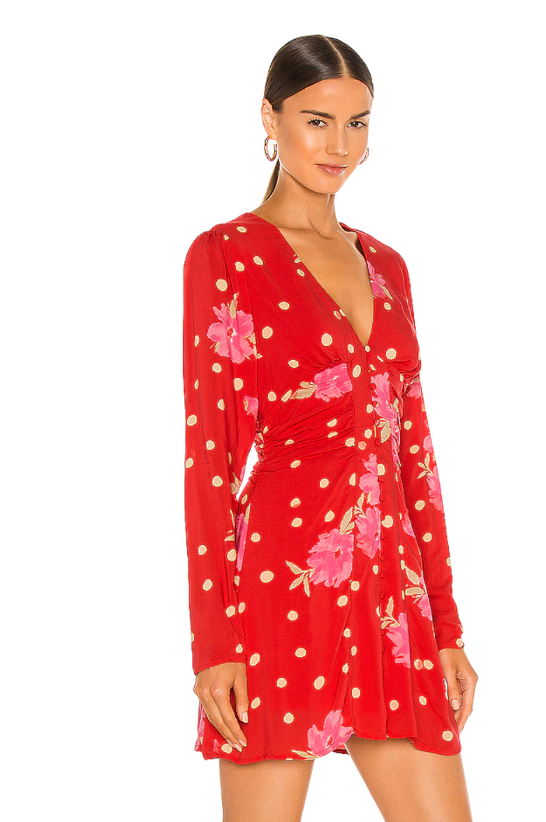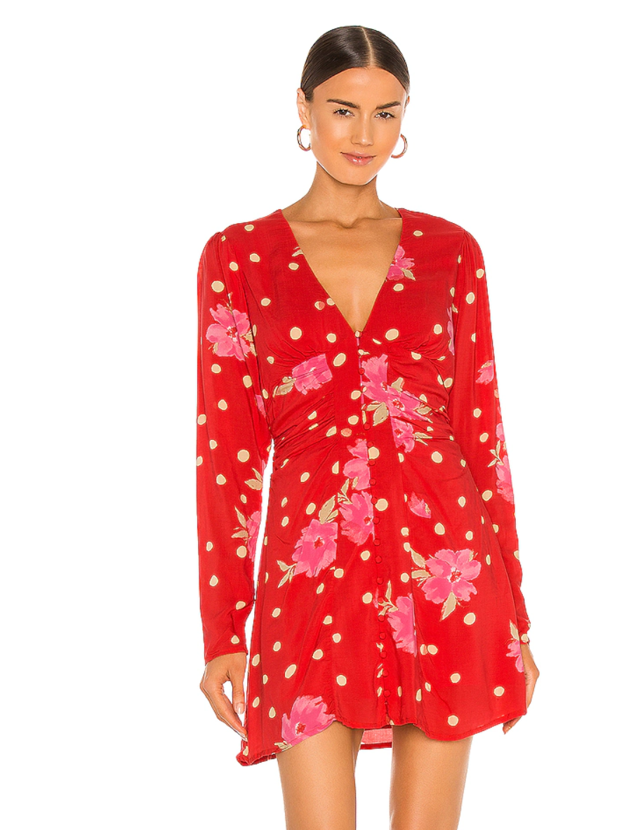 Ruched from front to sides, this flared mini dress with button detail accentuates the waist. V-neck Long sleeves Pullover style Covered front buttons Front-to-side ruching Lined Viscose Hand wash Imported SIZE & FIT About 35 from shoulder to hem Model shown is 510 (177cm) wearing US size Small. Women Rtw Swim Outerwear - W Trend Collections > Saks Off 5th > Barneys Warehouse. Free People. Color: Strawberry. Size: L.