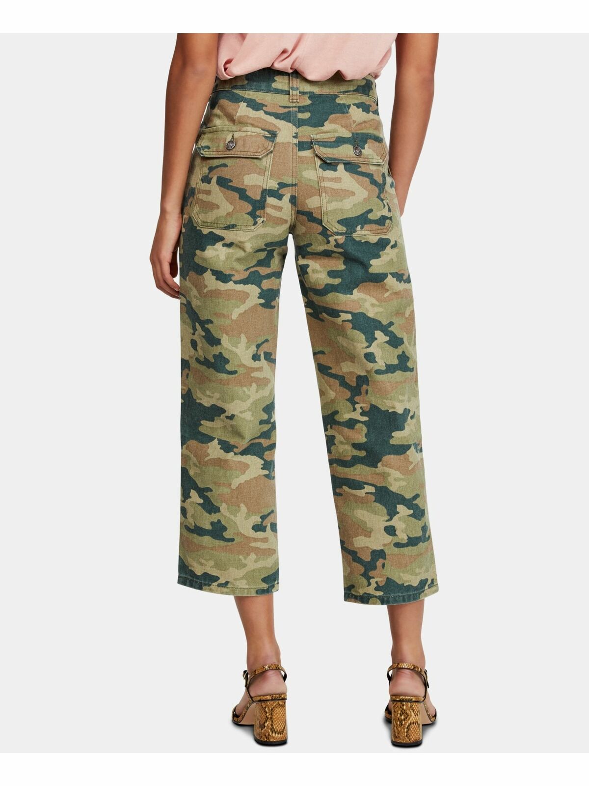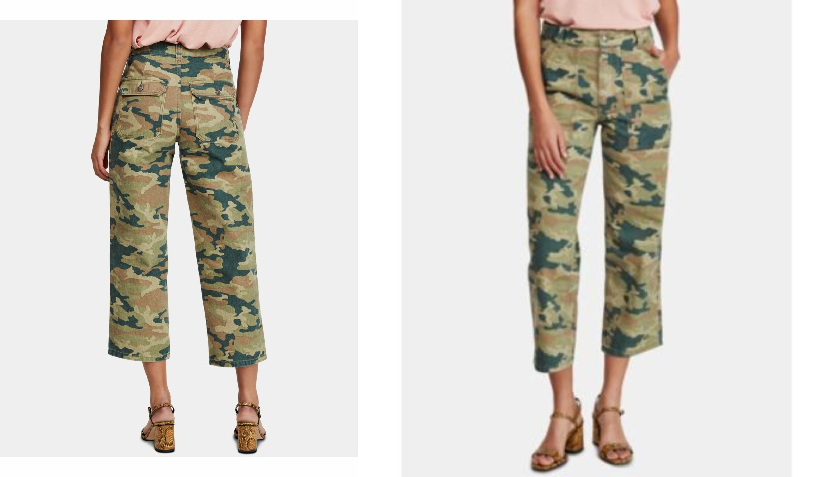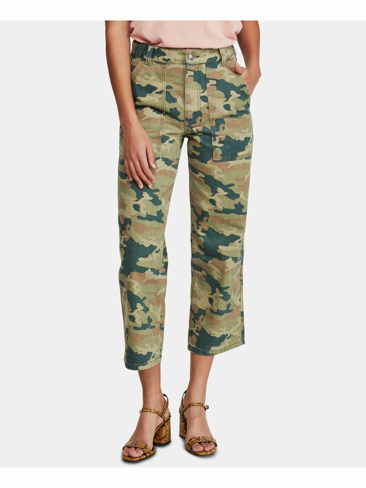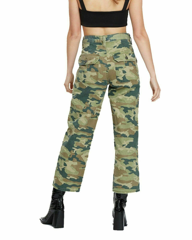 Free People's all-cotton cargo jeans get noticed in a cropped length and modern camo print.