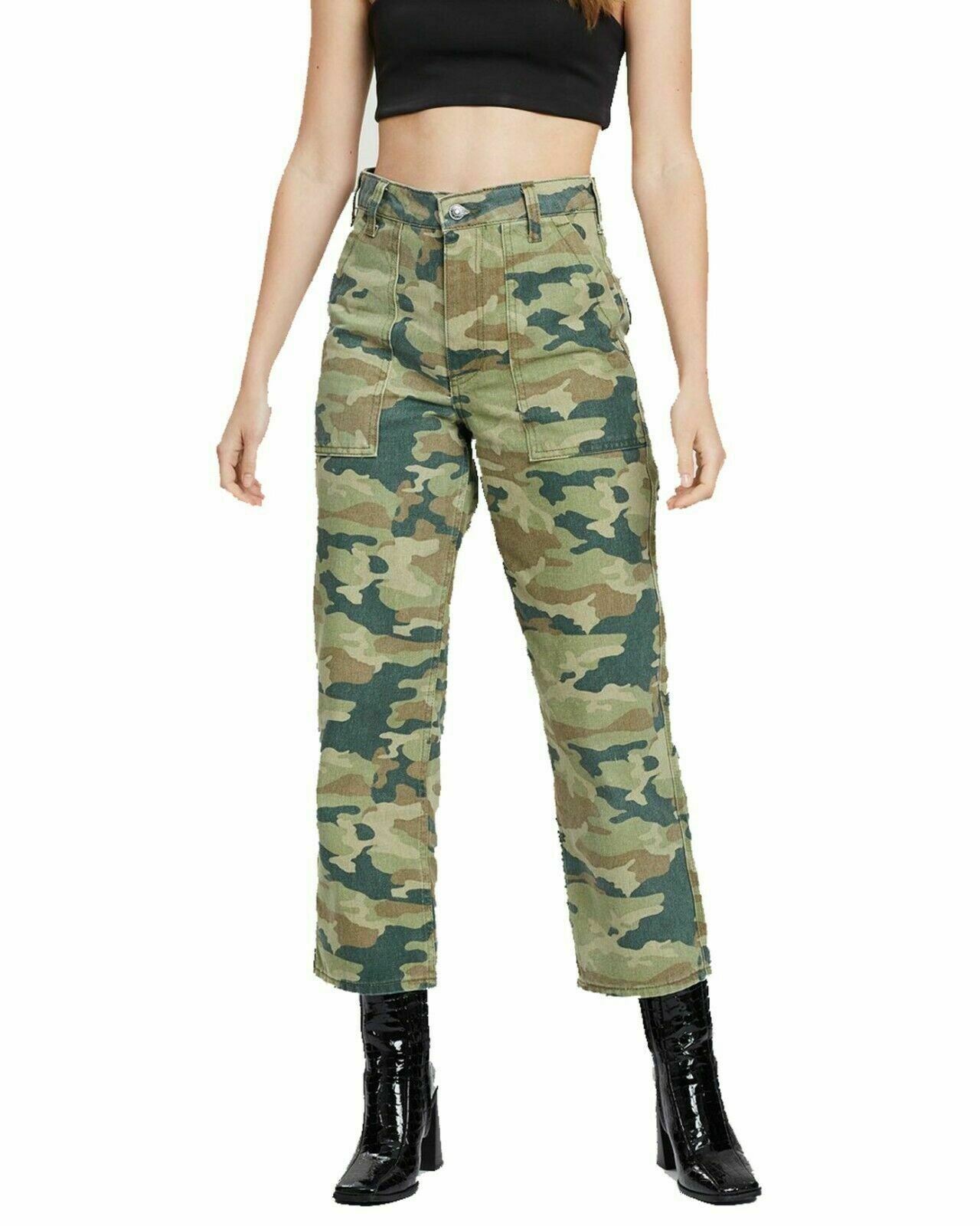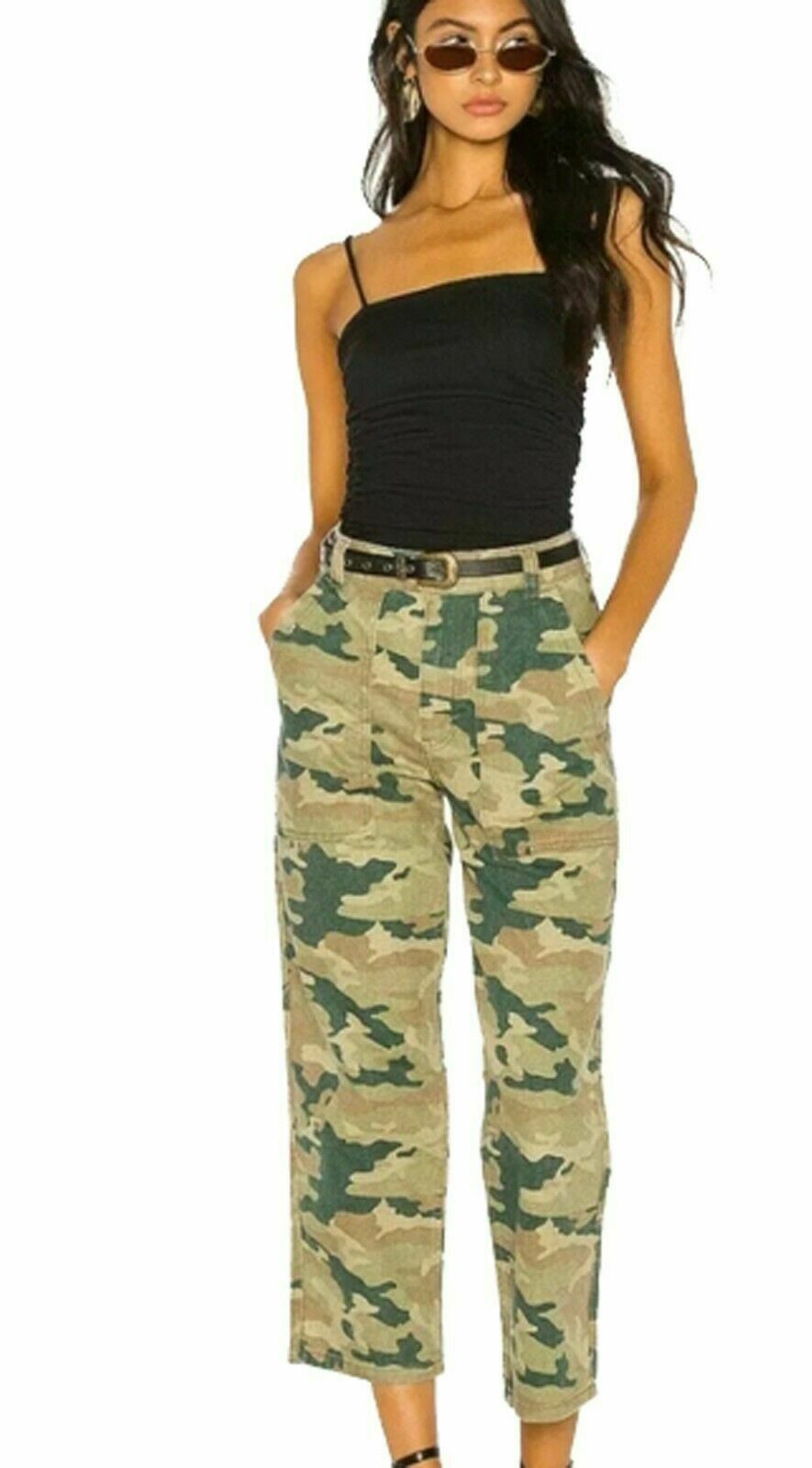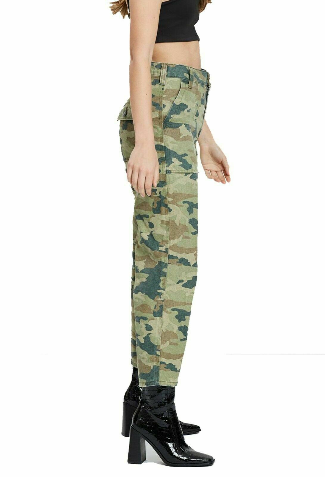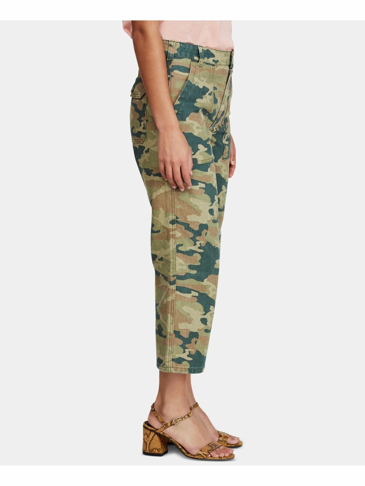 Free People's all-cotton cargo jeans get noticed in a cropped length and modern camo print.