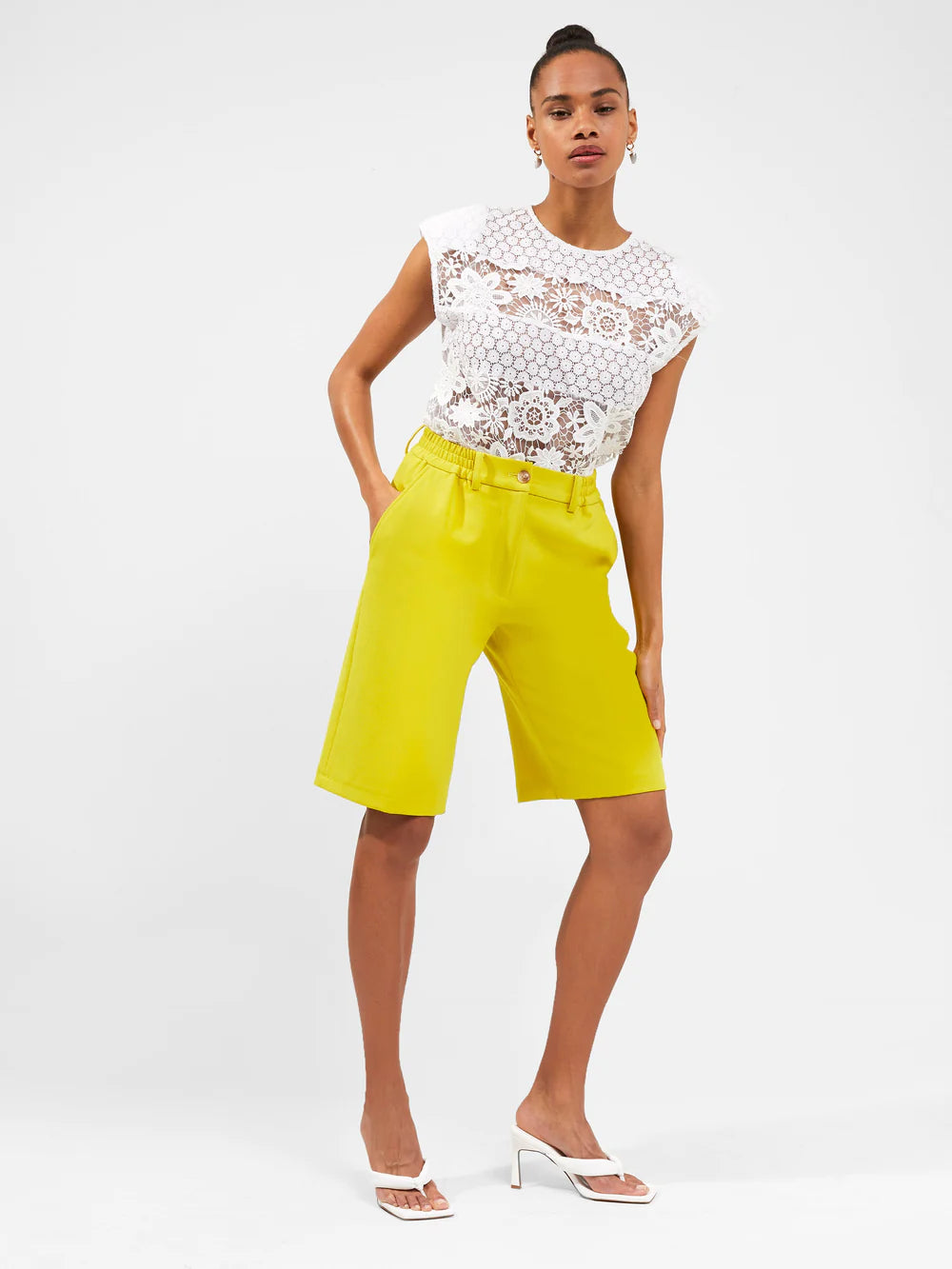 Elasticized side insets dial up the comfort without compromising the classic style of these lightweight shorts with a lengthy Bermuda silhouette. Side elastic waist 64% polyester, 30% viscose, 6% elastane Machine wash, tumble dry Imported.