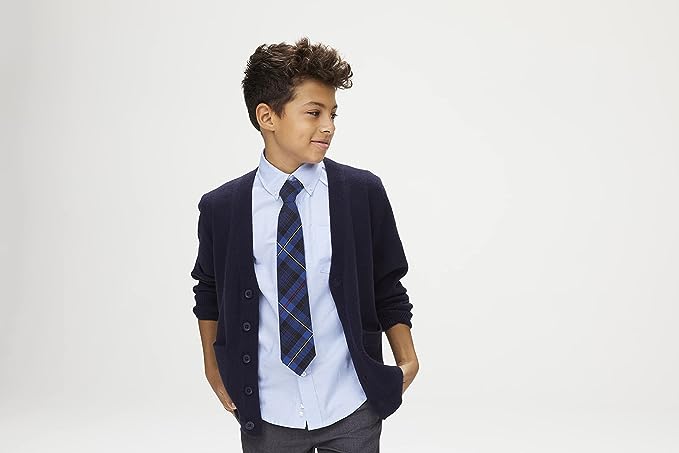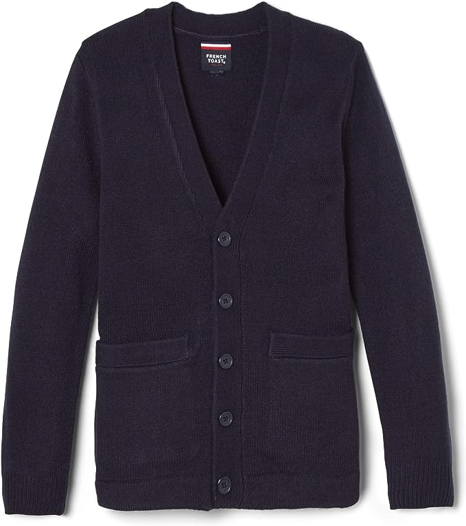 100% Acrylic Imported Button closure Machine Wash Perfect school uniform layering piece Anti-Pilling V-Neck Chalk Button Closure Front Welt Pockets