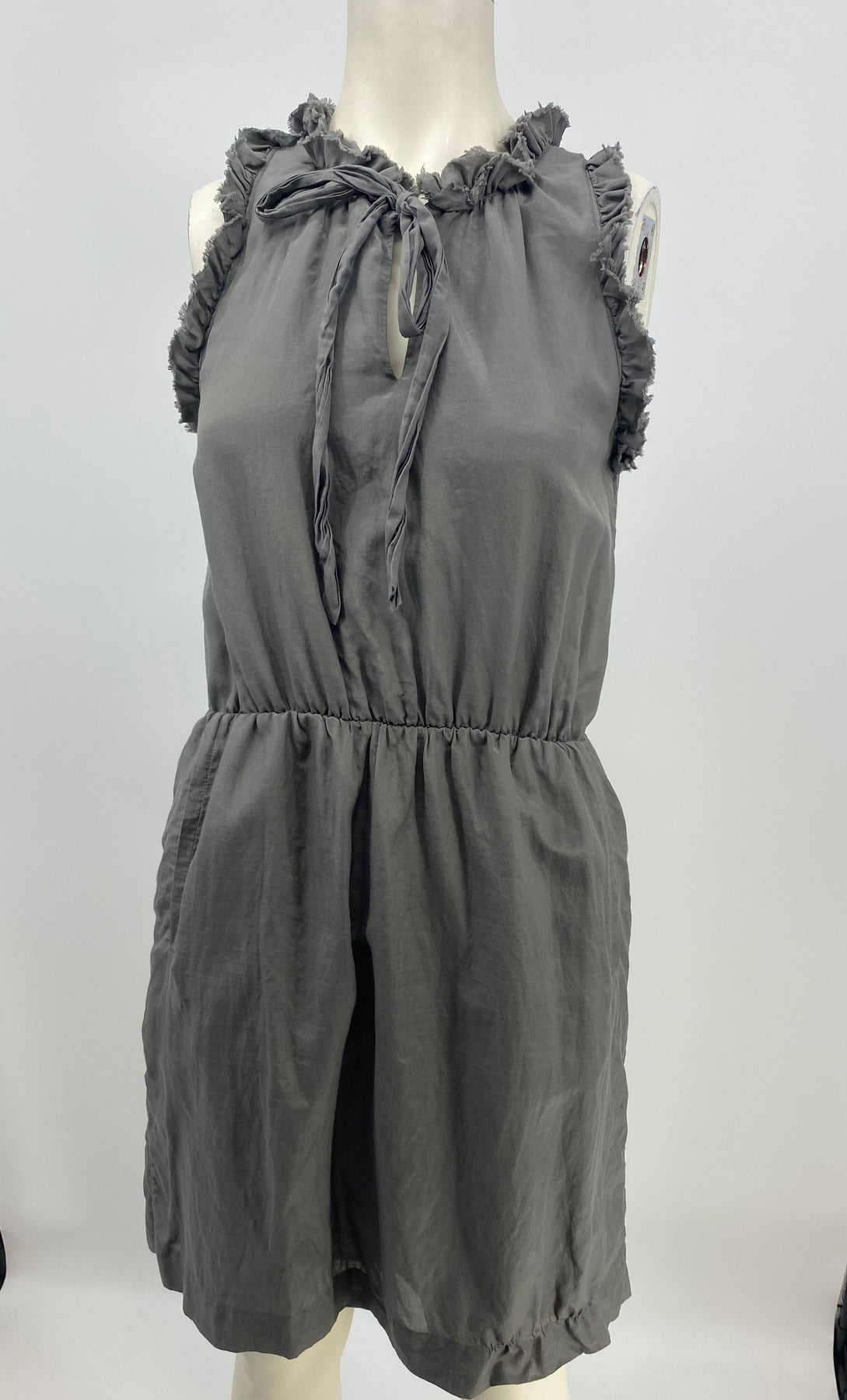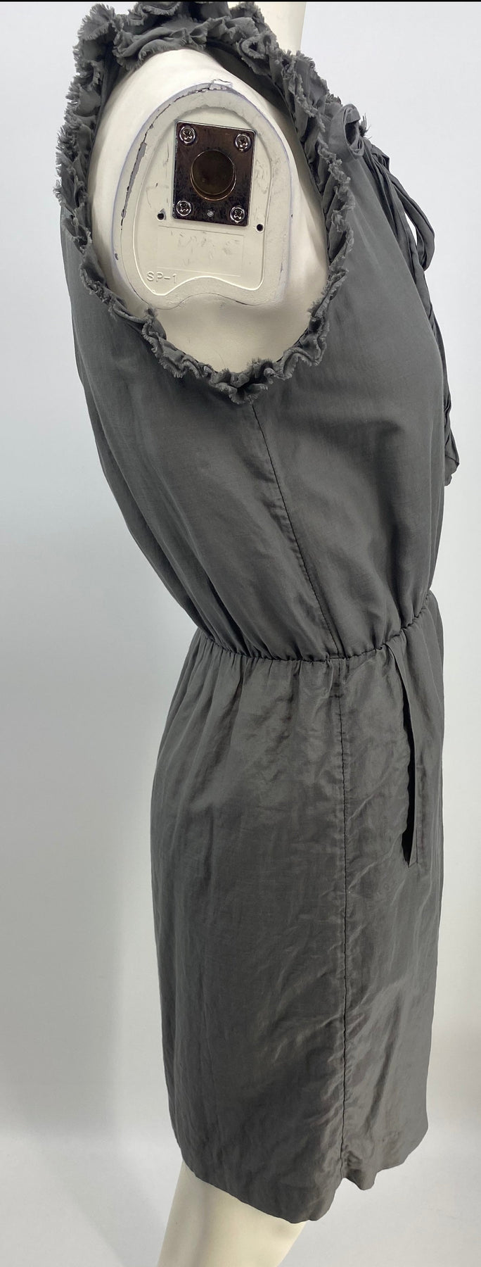 A pre-owned garment in like new condition. This item shows little to no signs of use, and has been inspected for flaws, rips, seams, tears, stains, and other unsightly blemishes. Excellent condition; very flattering dress with an elastic waist. Shell = 57% cotton; 43% silk Lining = 100% polyester