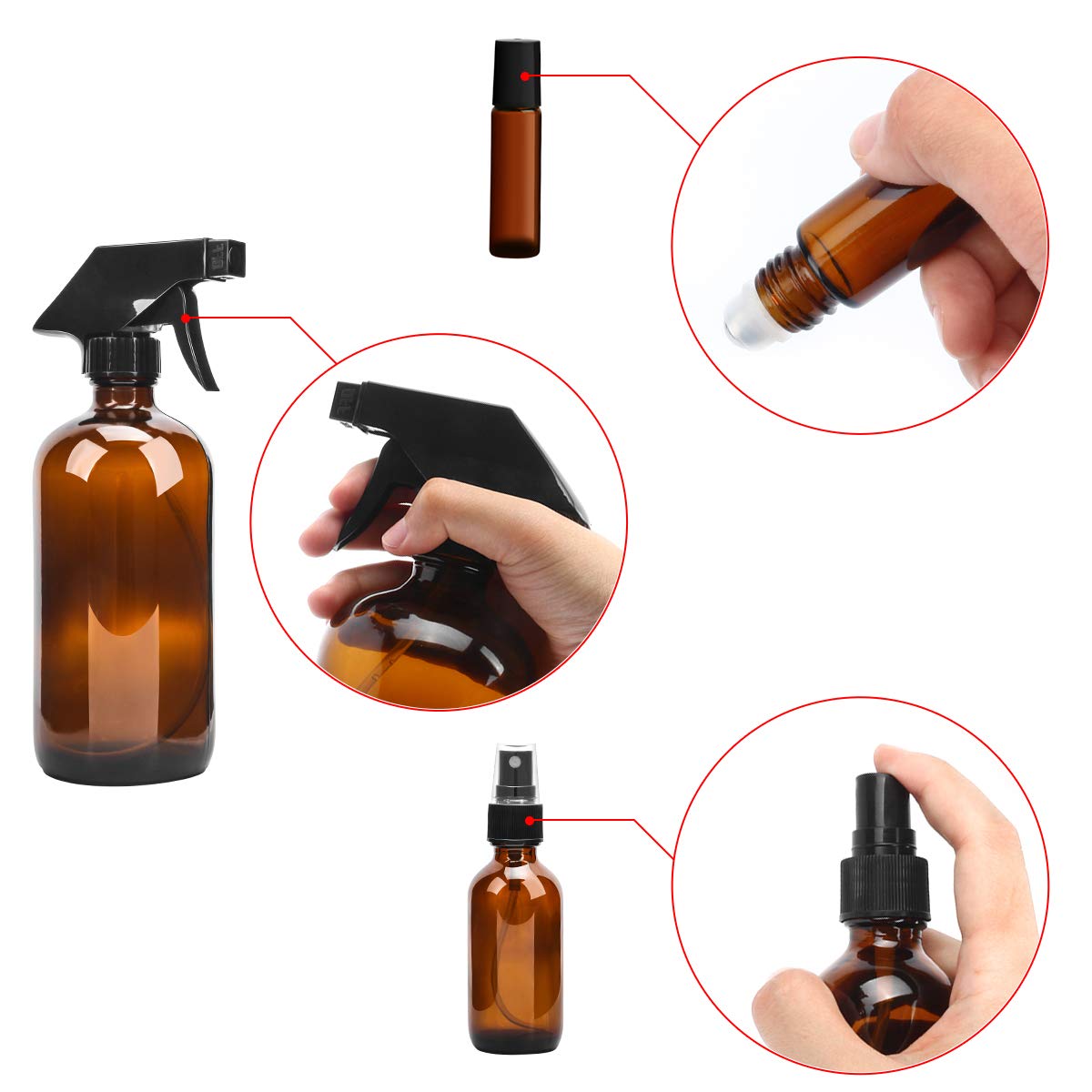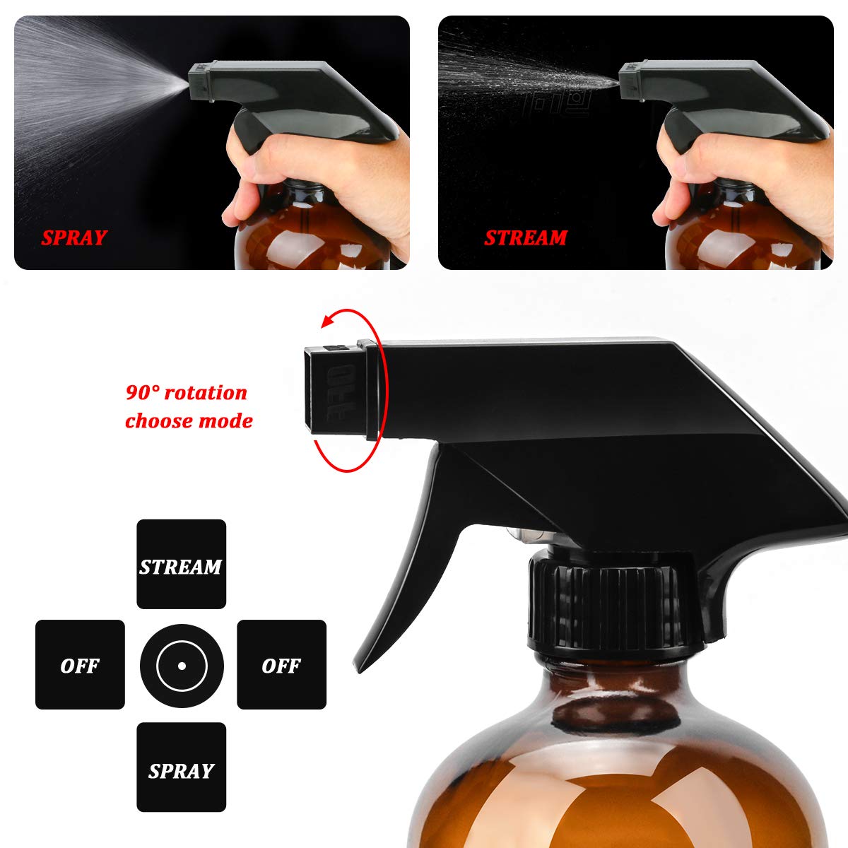 Adjustable and durable nozzle - Fine Mist and Jet Stream. When you turn to Stream, it will jet stream; When you turn to Spray, it sprays mist; When you turn to OFF, it will be closed. Multi-functional set - All kind of uses around the home including homemade non-toxic window cleaners, floor cleaner, kitchen cleaner, pet spray, ironing, linen spray, mixing essential oil recipes, misting window herbs or succulents, beauty products and many more... Environmental protection - Protect the environment, and reduce plastic chemicals in your house with a clean chemical free reusable mister for all your liquid sprays. Convenience: Get a mix of different sizes for a variety of uses around the house. Small enough to fit in your hand and large enough for any liquids. Perfect for travel. UV protection - our bottles are dark brown and protect your sensitive essential oils, cleaning solutions, bleach mixtures, and anything else you can create from the harsh ultraviolet light that causes them to lose potency over time. You dont have to worry about storing sensitive mixtures for any length of time, or having to place them in a dark space!
