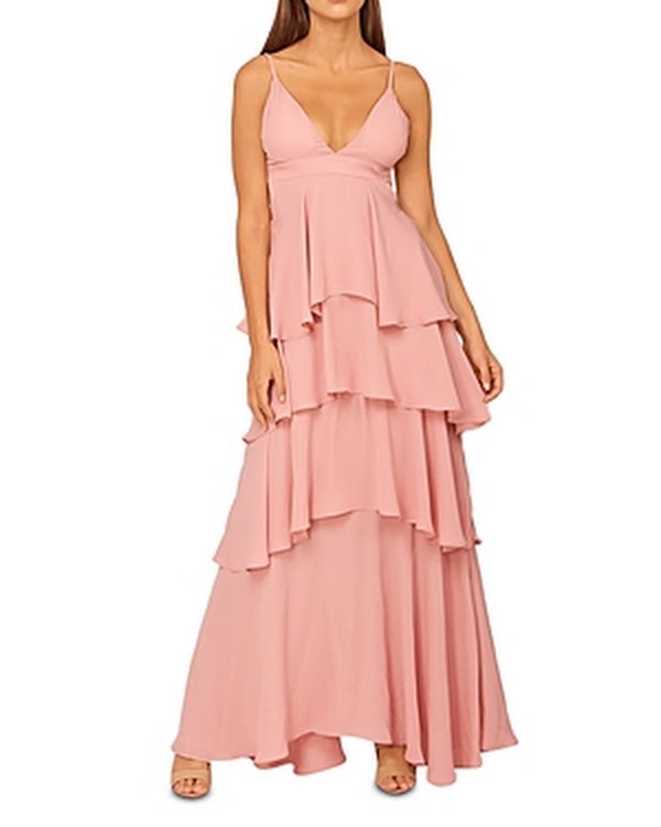Gracia Flare Layered Maxi Dress This is a Bloomingdales Outlet Item - Save 40% V-neck Adjustable spaghetti straps Sleeveless Empire waist Flared tiers at hem Concealed back zip closure Shop more items from The Outlet Store MATERIAL & CARE 100% polyester Hand wash