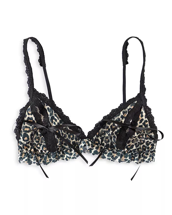 Fits true to size, order your normal size Soft unlined cups, wireless with cutout keyholes with ribbon-tie closure Adjustable straps Pullover style Allover animal print Style #2X7834 Made in USA MATERIAL & CARE Body: 100% nylon; trim: 90% nylon/10% spandex; ribbon: 100% polyester Hand wash / dry flat
