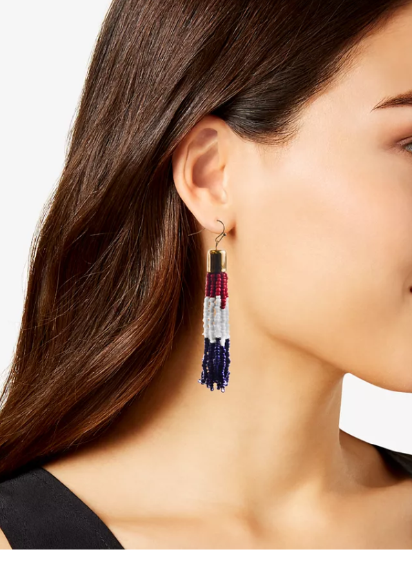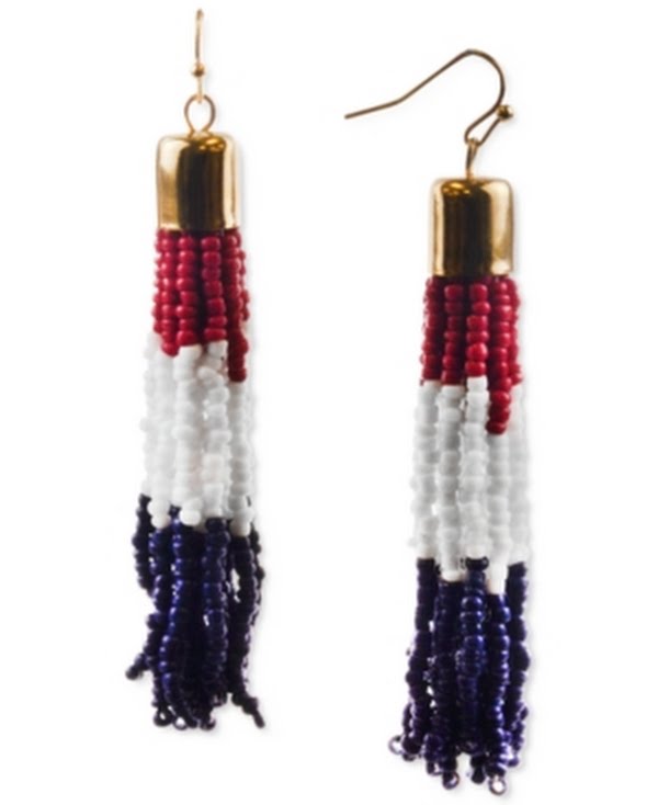 Give a little shimmy to show off these red, white and blue seed bead tassel drop earrings from Charter Club.