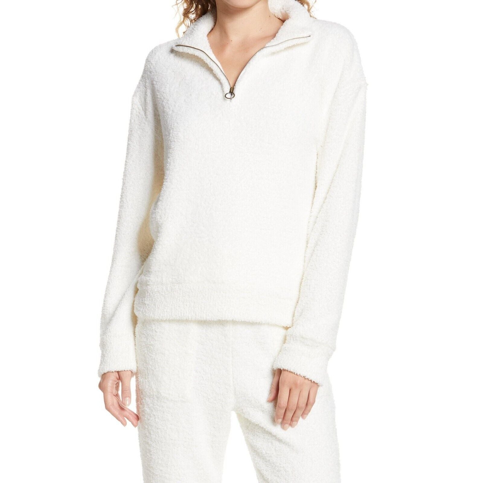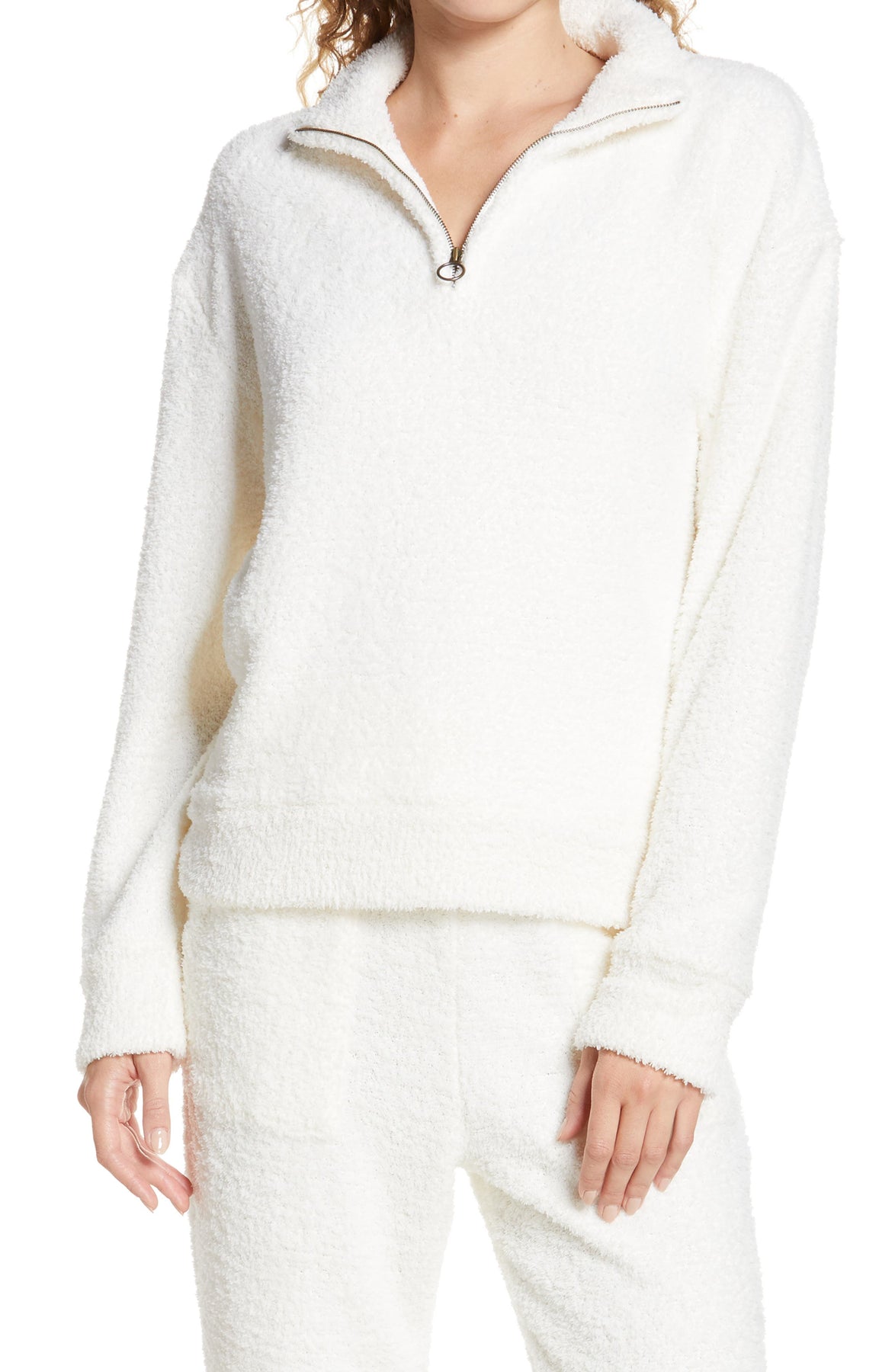 PRODUCT DETAILS Fits true to size, order your normal size Model measurements: 510 height, 33.5 bust, 23.5 waist, 34.5 hips, wearing a size small Stand collar with partial zip closure Long sleeves with ribbed cuffs Allover fuzzy texture Imported Web ID: 3961741 MATERIAL & CARE 100% polyester Machine wash