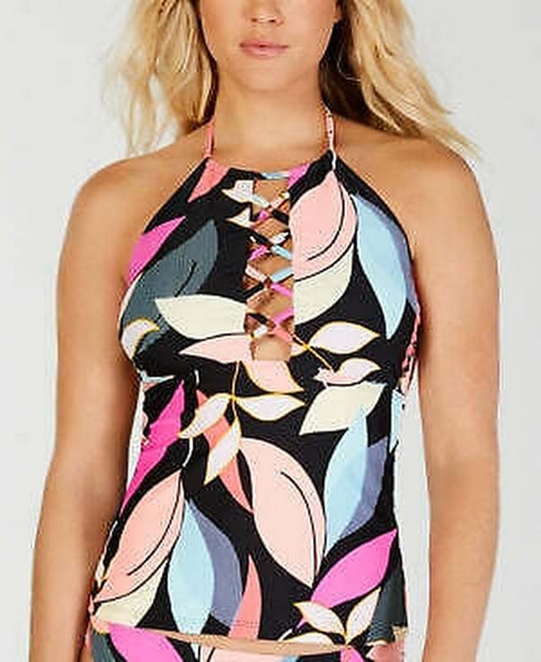 Hula Honey Juniors Jungle Boogie Printed High-Neck Halter Tankini Top, Women Womens Clothing - Swimwear .